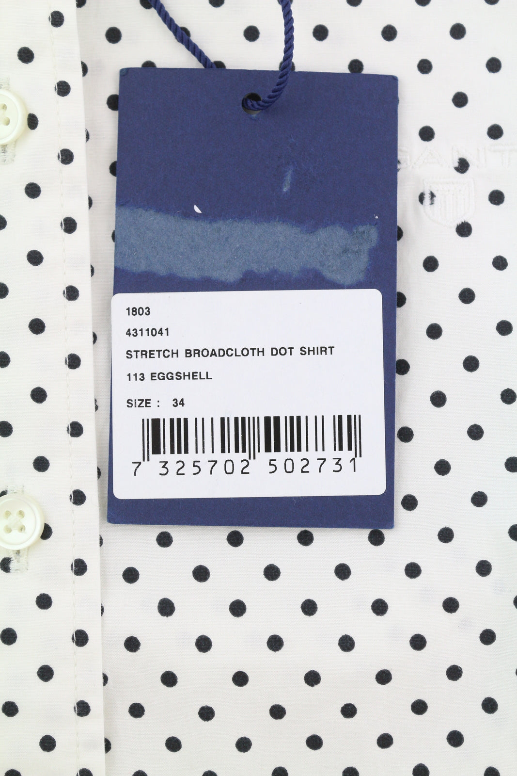 GANT Tamprūs, plačiaauliai marškinėliai su taškeliais, balti, su sagomis ir platėjančia apykakle, laisvalaikio stiliaus.