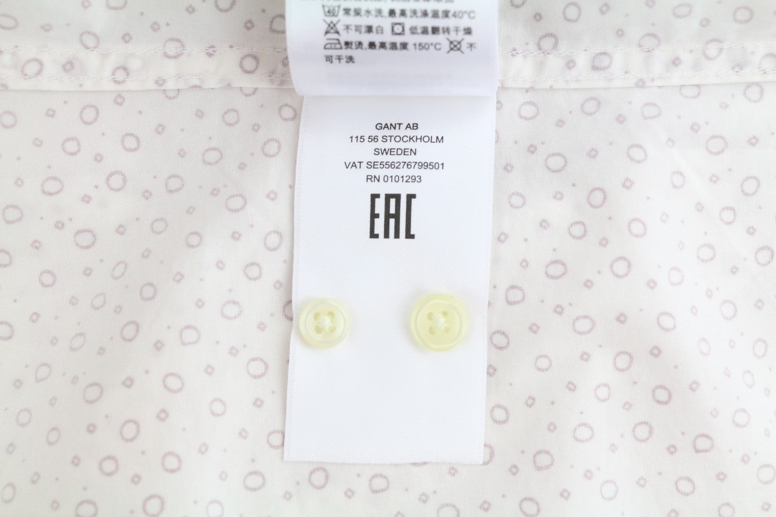 GANT Tamprūs, plačiadrabdžiai moteriški marškinėliai su raštu, 38 dydžio, balti, su sagomis užsegamais kraštais
