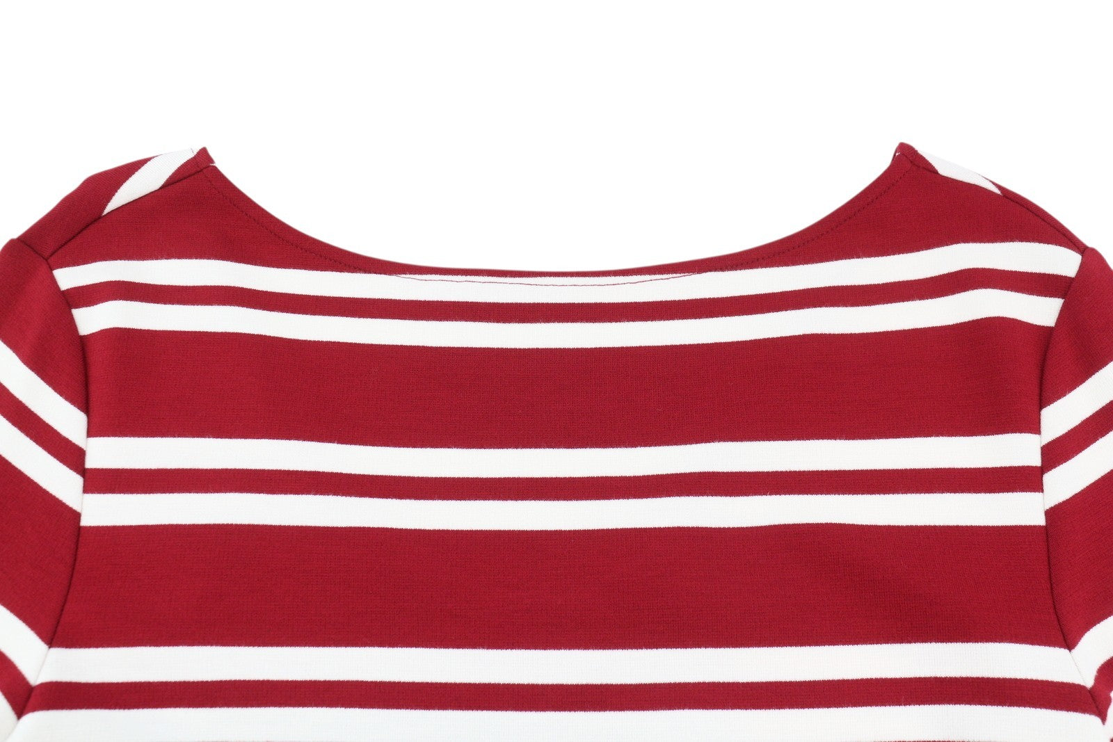 GANT dryžuota moteriška suknelė S bordo spalvos apvaliu kaklu 3/4 rankovėmis džersio ilgio iki kelių