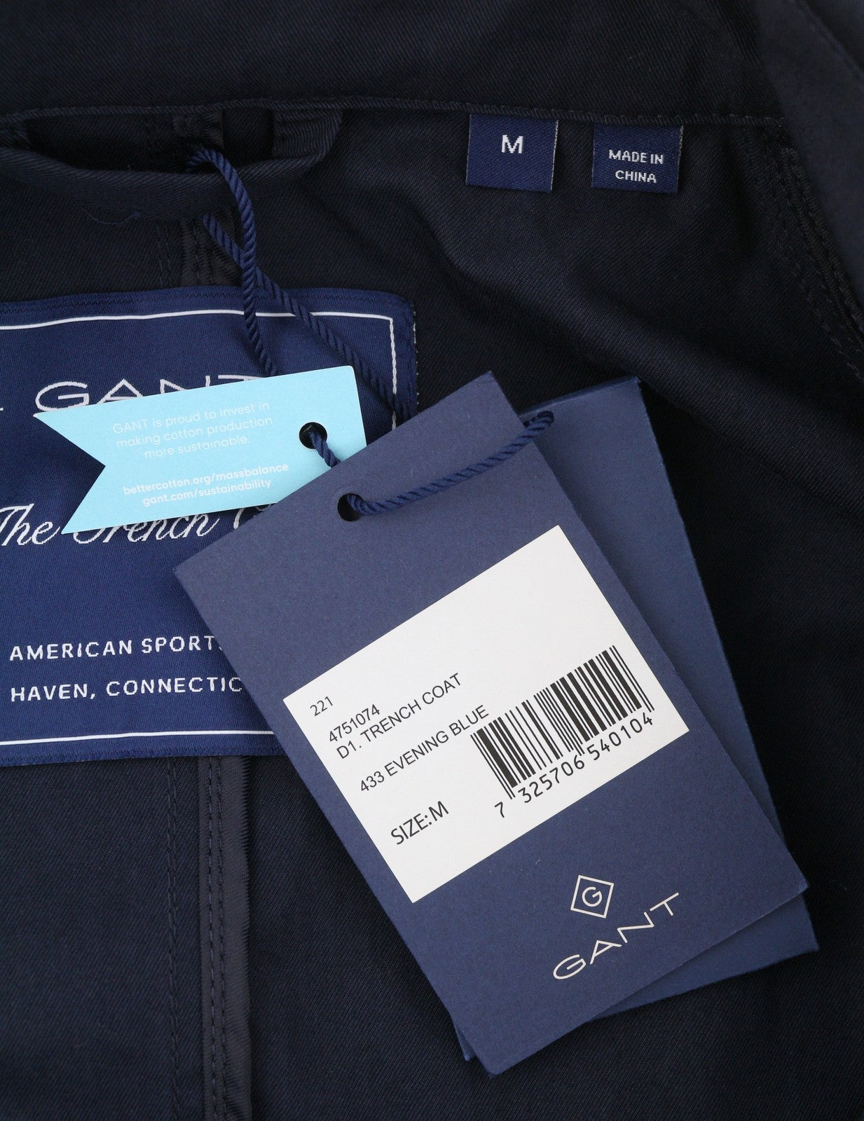 GANT Trench Coat Women Jacket M Evening Blue Belted Double Coat