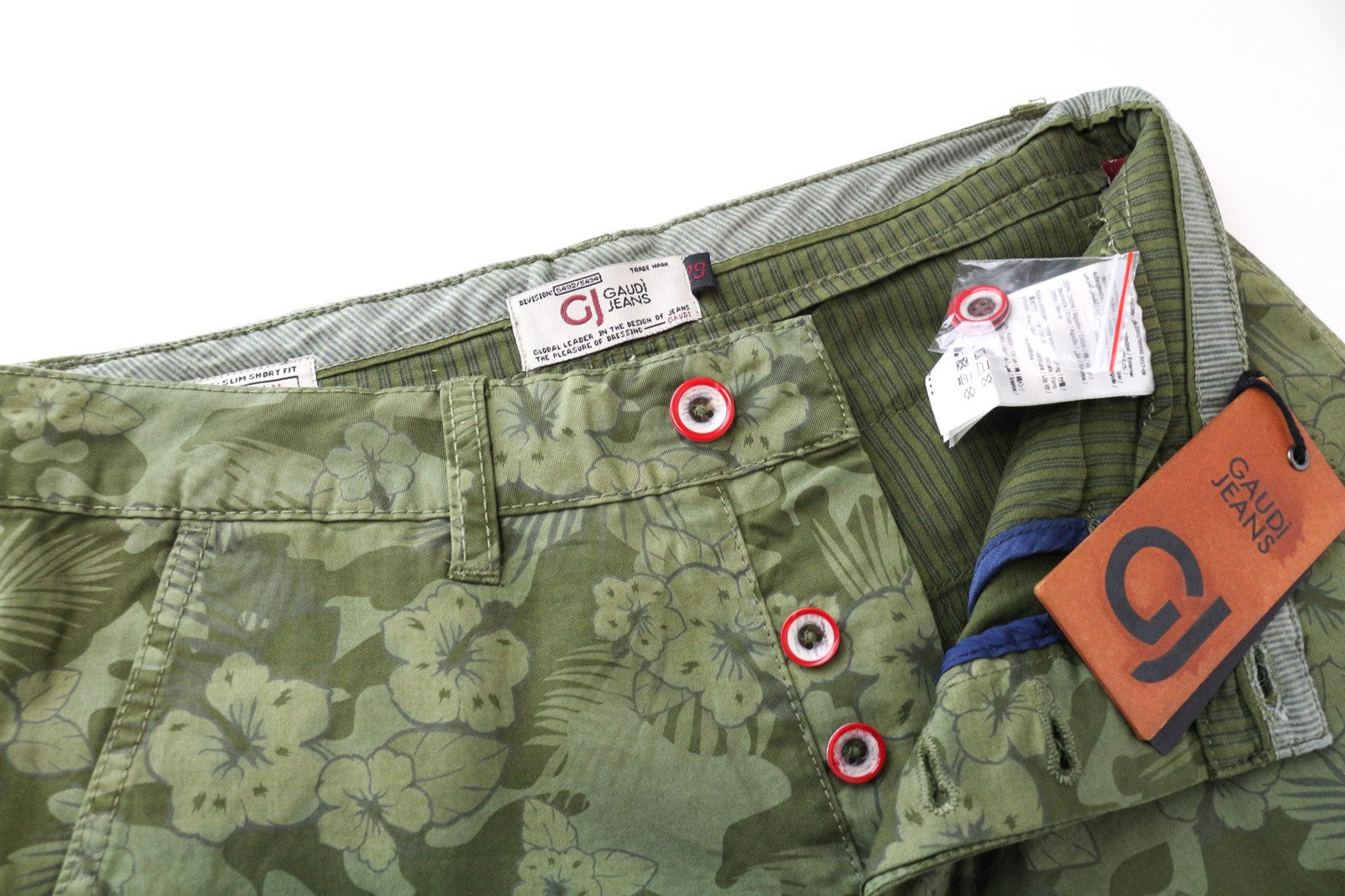 GAUDI JEANS Men's Shorts W29 Green Cargo Lined Pure Cotton Floral Print Style