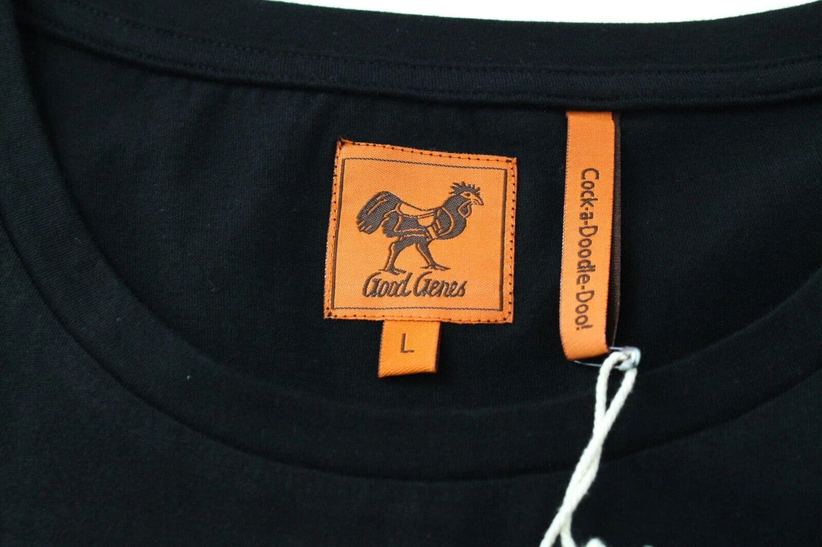 GOOD GENES L vyriški juodi marškinėliai su gaidžio raštu ir medvilniniais marškinėliais su įtvaru vasarinei dienai
