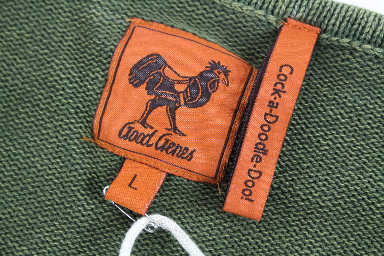 GOOD GENES vyriškas megztinis L dydžio žalias medvilninis megztinis ilgomis rankovėmis