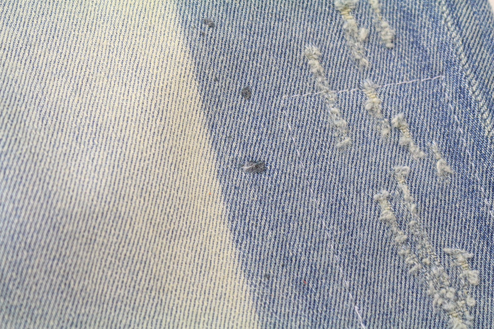 Linted pockets on the inside. Stain and thinned out fabric on the left leg. Please see added photos.