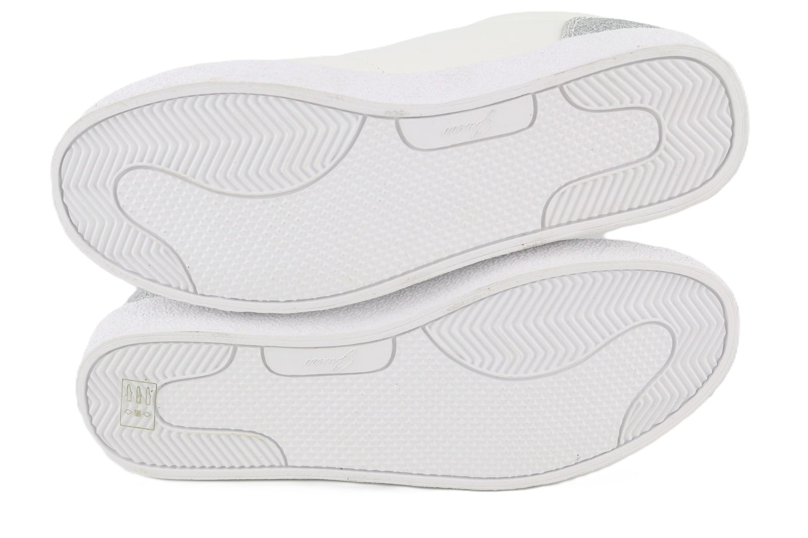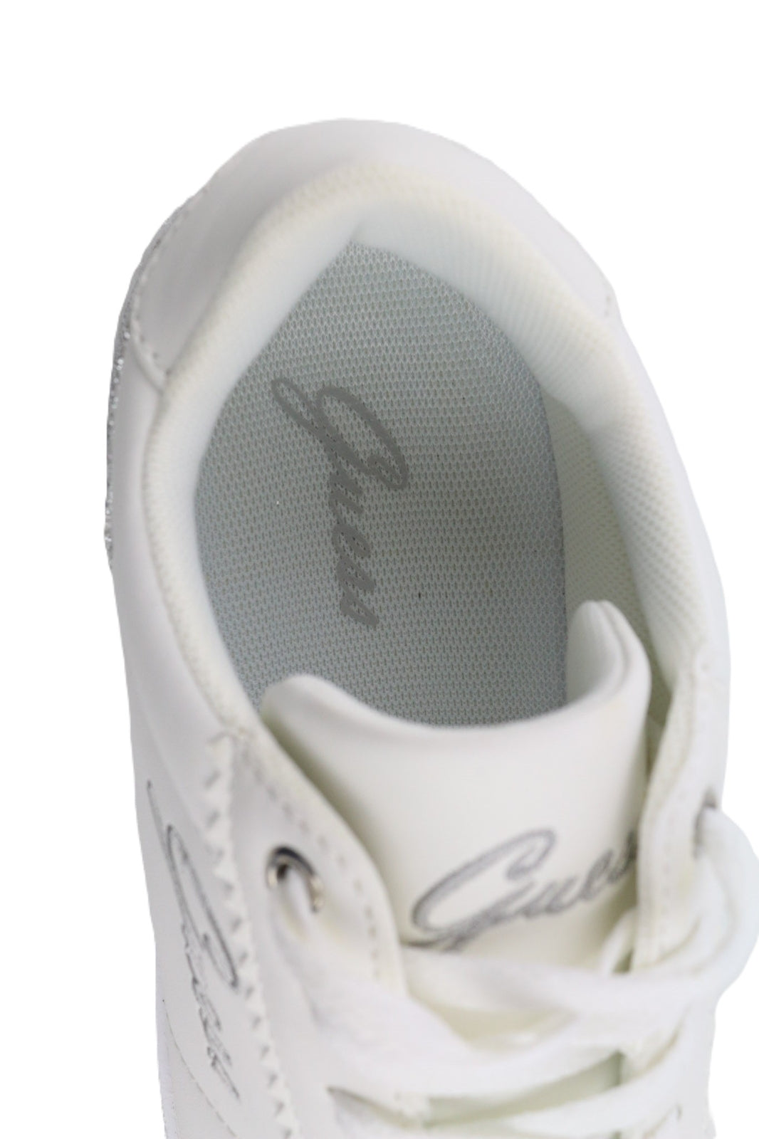 GUESS moteriški sportbačiai EU36 UK3 šviesiai balti, žema pakulnė, suvarstomi šone, blizgantys apvalios nosies.