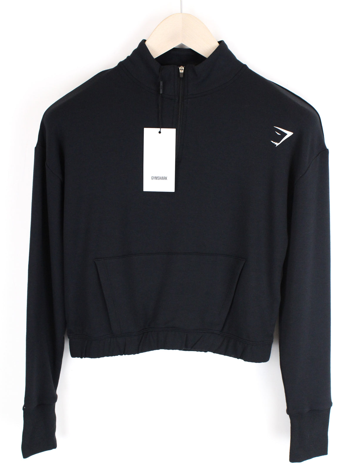 GYMSHARK Pippa moteriškas megztinis S dydžio, su puse užtrauktuko ir trumpomis priekinėmis kišenėmis.