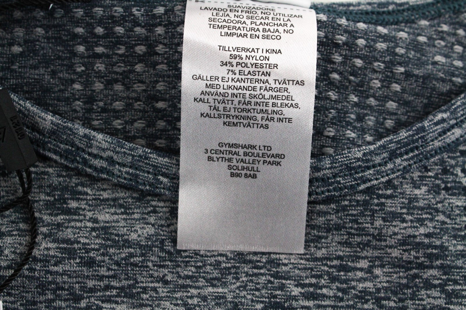 GYMSHARK Vital moteriški marškinėliai XS dydžio mėlynai pilki ilgomis rankovėmis, tamprūs sportiniai marškinėliai