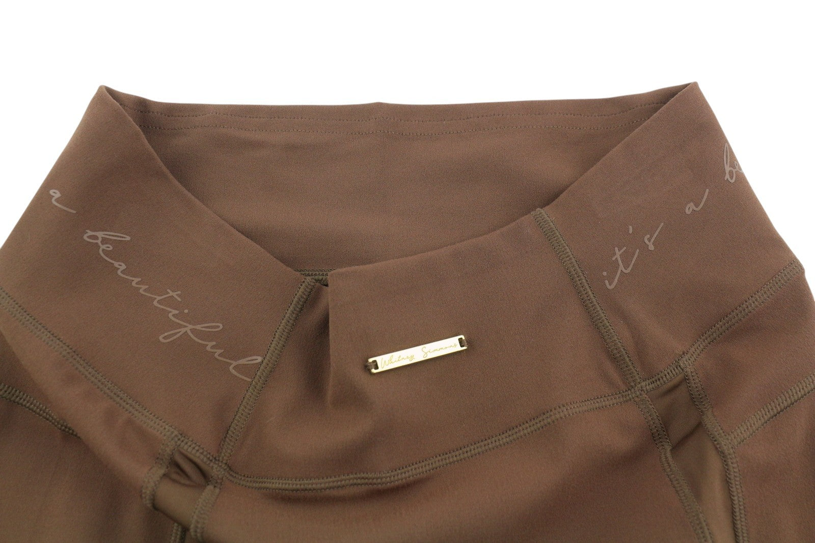 GYMSHARK Whitney moteriški šortai, rudi, su aukštu juosmeniu, tamprūs, sportiniai šortai su logotipu.
