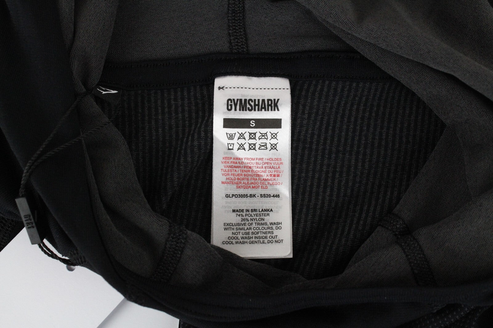 GYMSHARK moteriškas juodas džemperis su gobtuvu S dydžio sportinė apranga ilgomis rankovėmis su logotipu