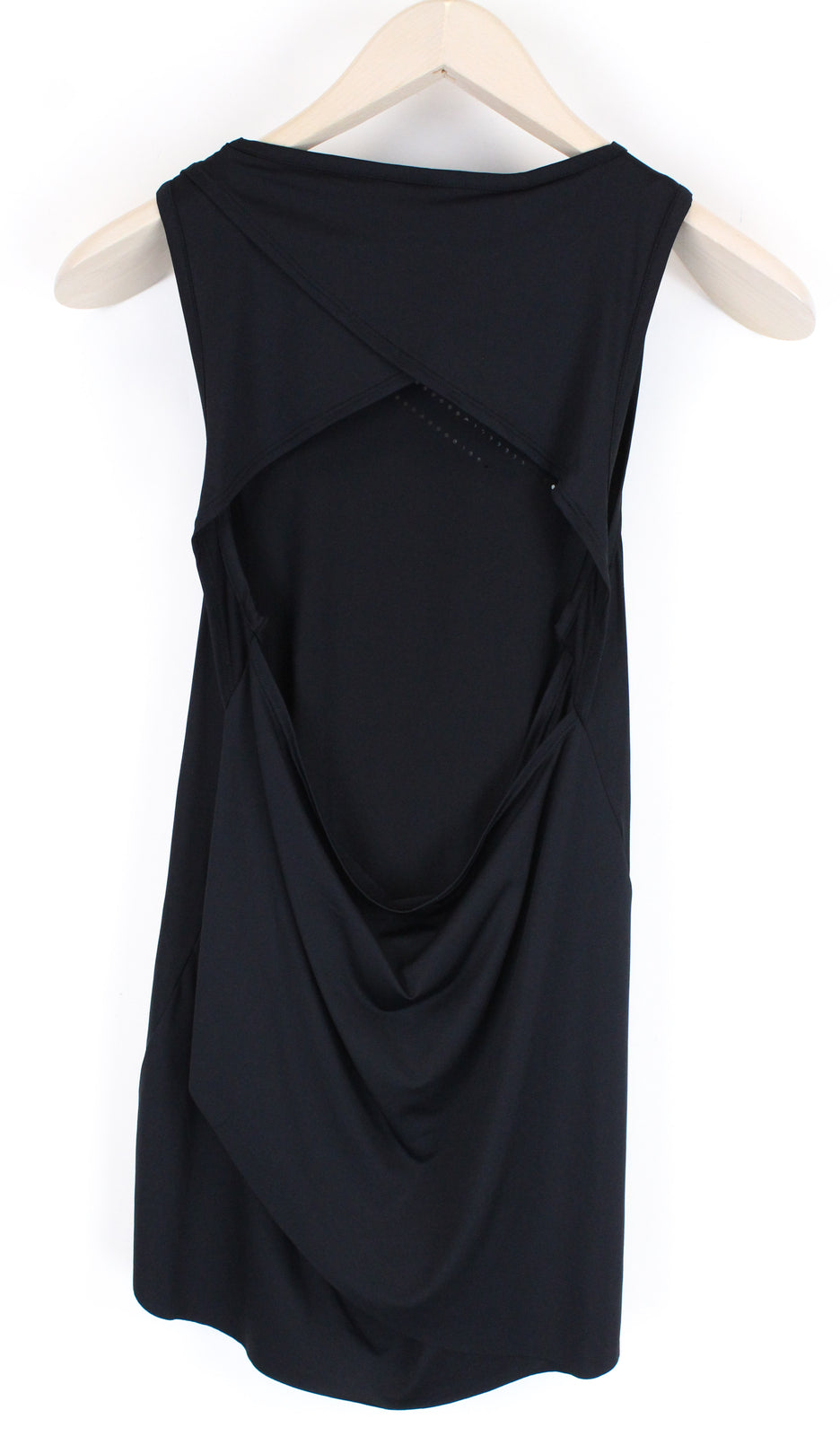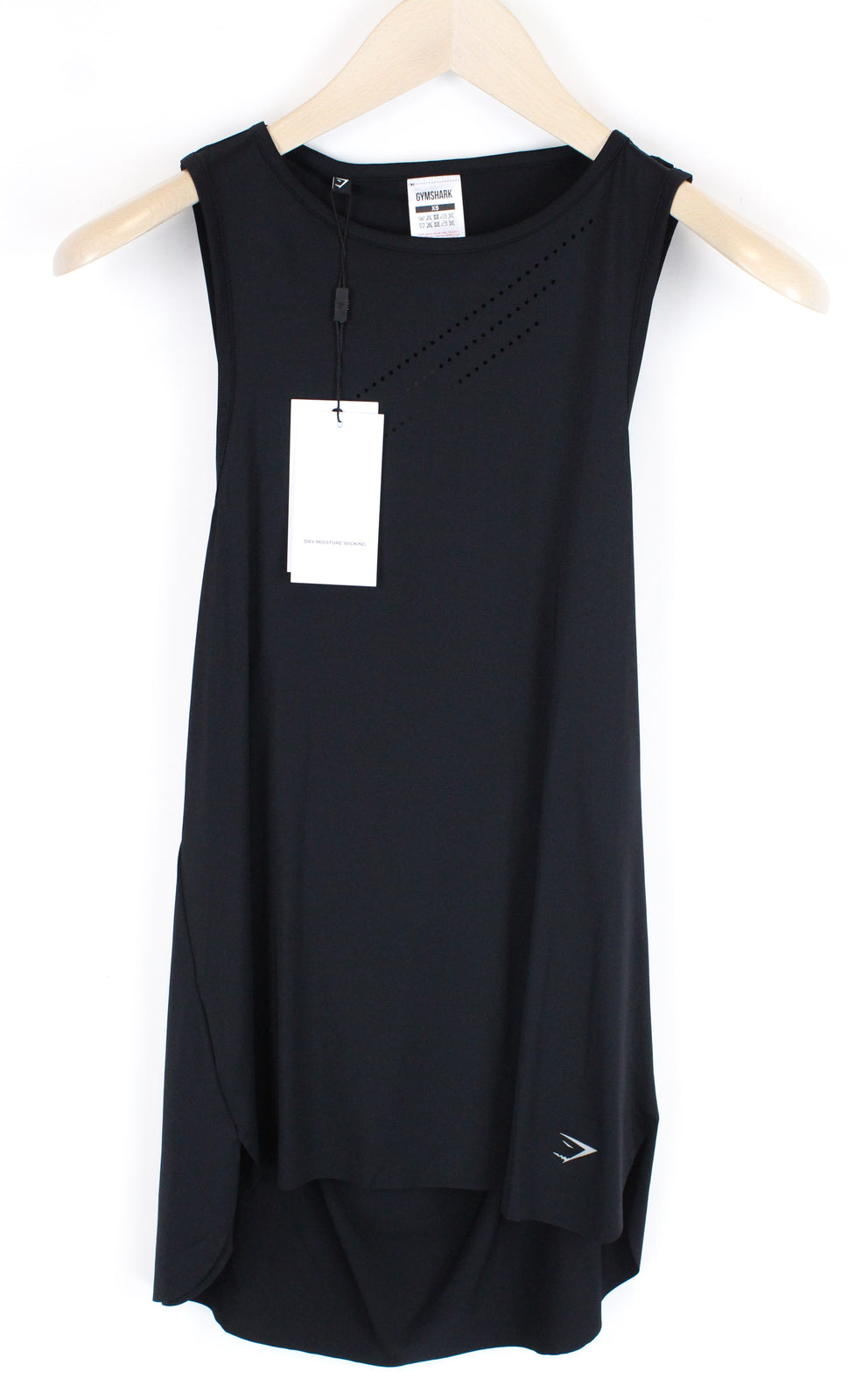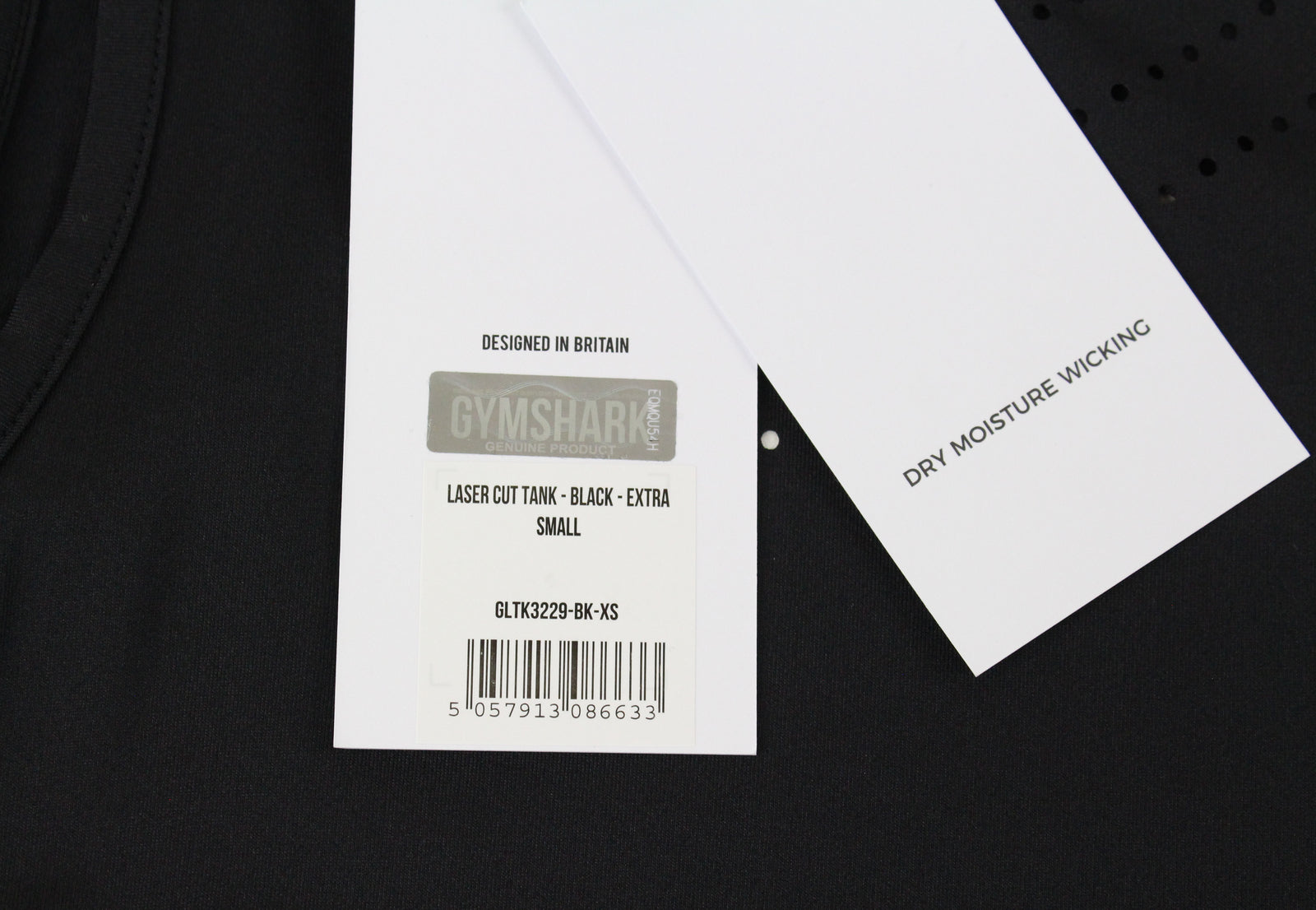 GYMSHARK moteriški sportiniai marškinėliai XS dydžio, lazeriu pjaustyti, kvėpuojantys, juodi, atviri, treniruočių marškinėliai.