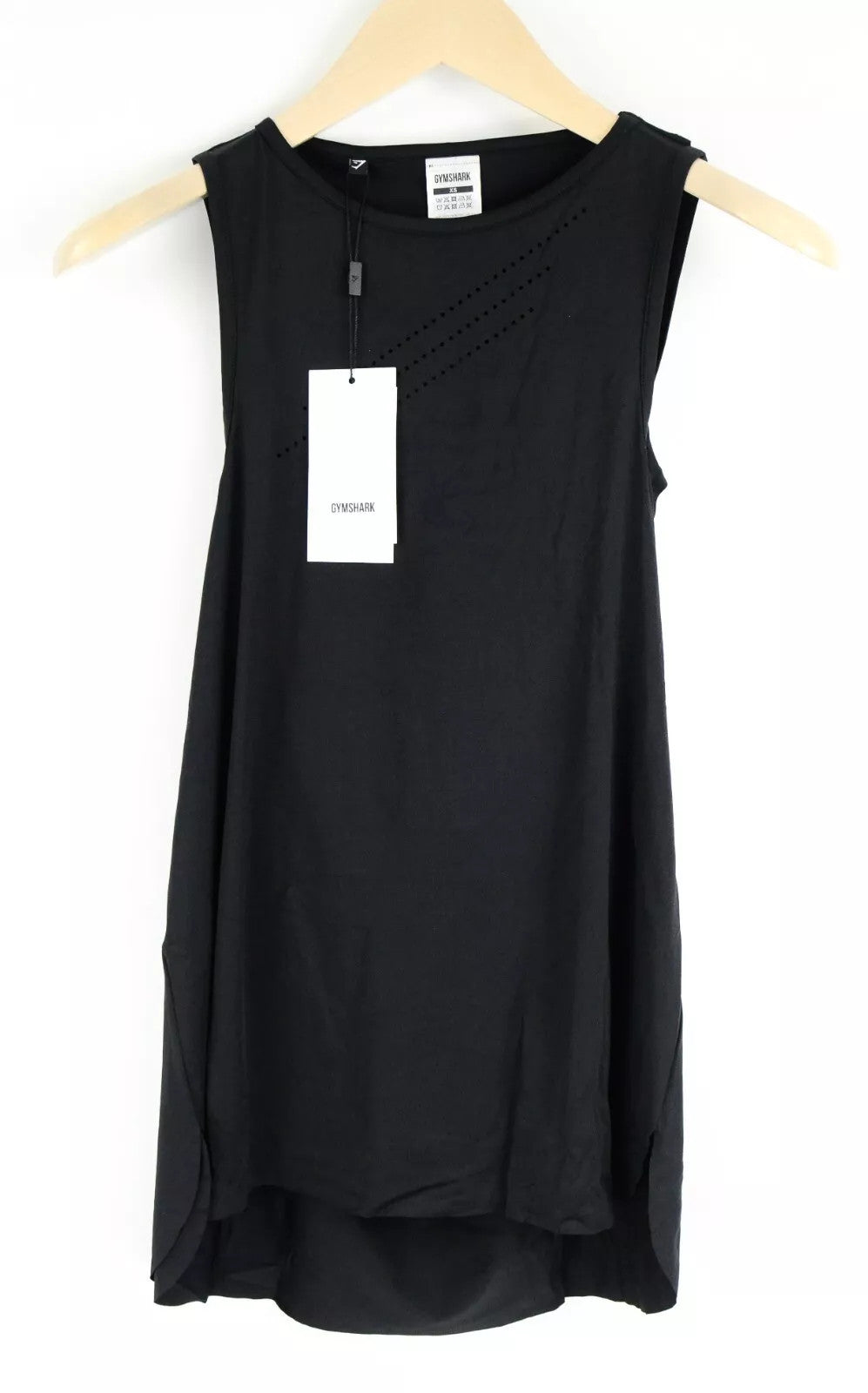 GYMSHARK moteriški marškinėliai XS dydžio, lazeriu pjaustyti, juodi, kvėpuojantys, lengvi.