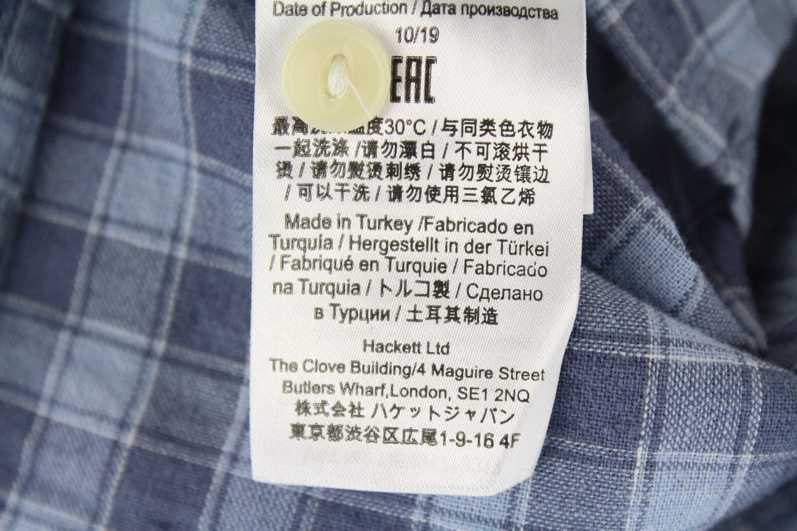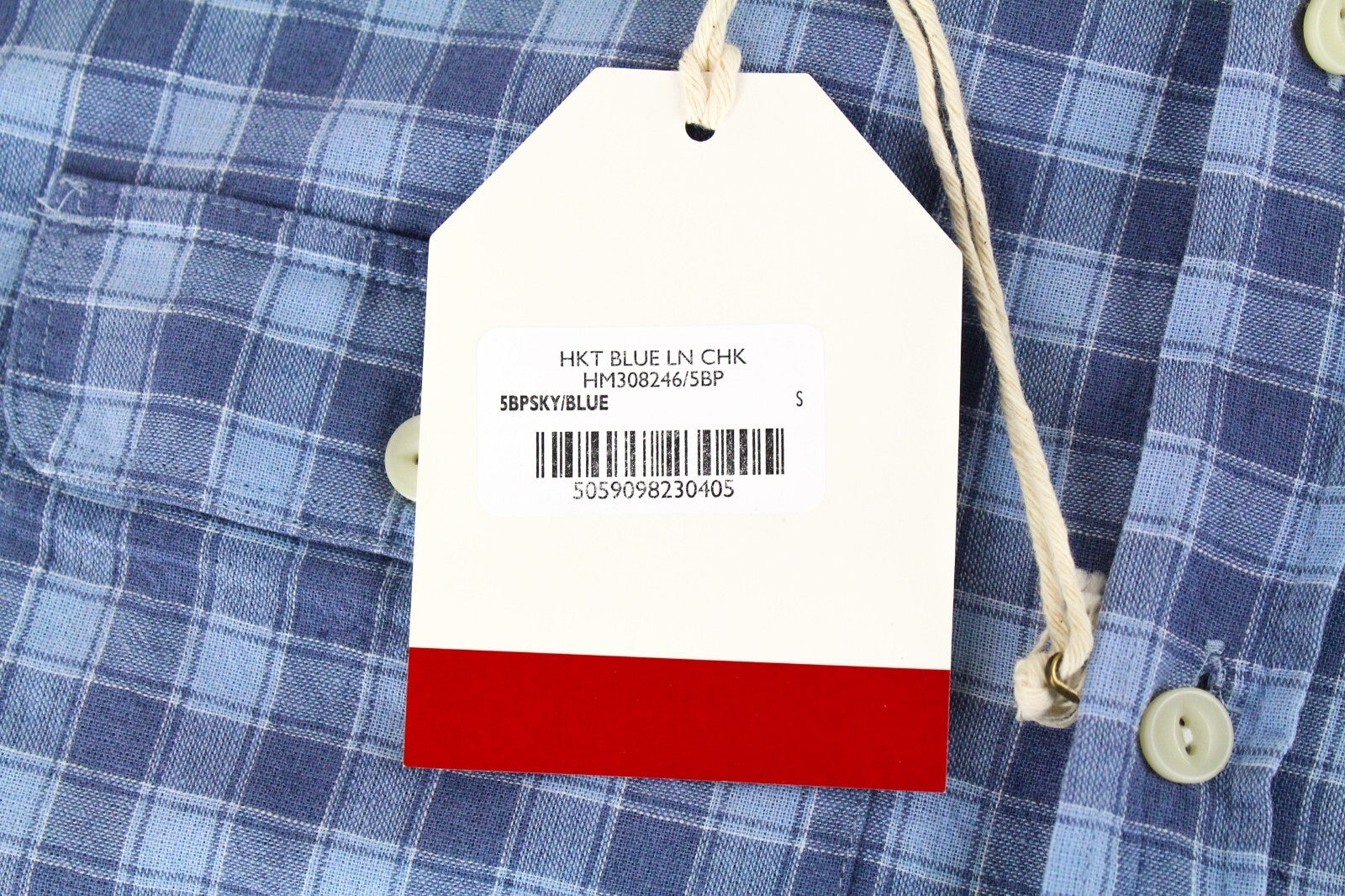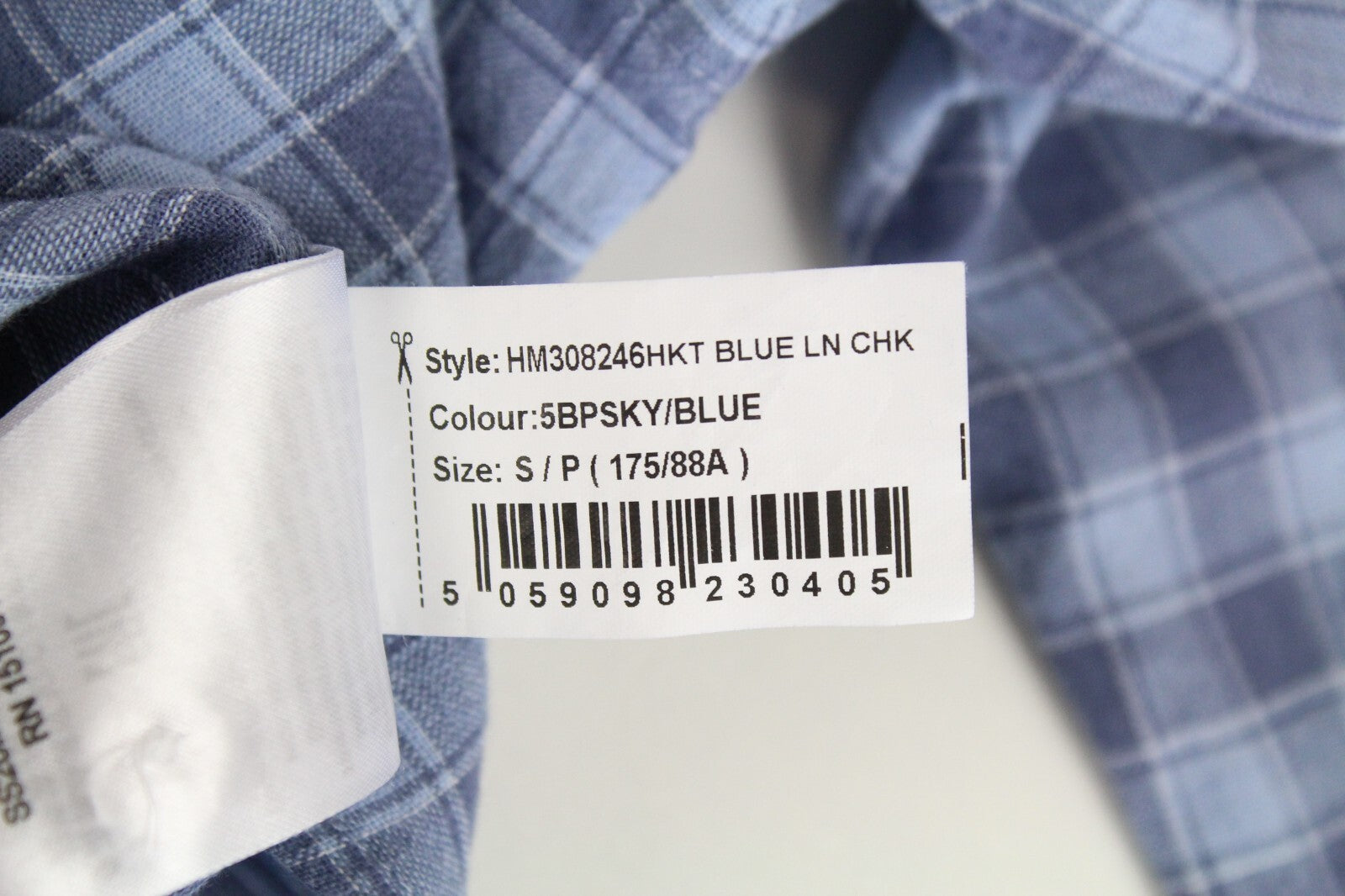 HACKETT Mens Shirt S Mid-Blue Checkered Slim Linen Cotton Button-Up Melange