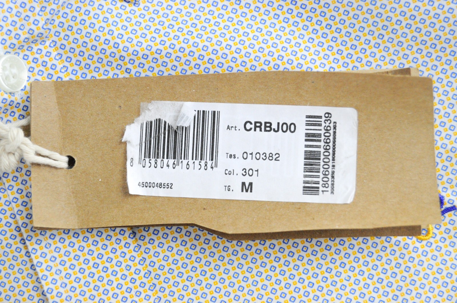 HARMONT & BLAINE M Shirt Mens Long Sleeve Cotton White Blue Yellow Patterned