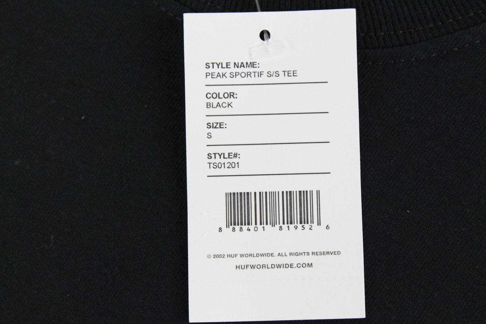 HUF Men T-Shirt S Navy Cotton Round Neck Short Sleeved Logo Pullover Stretch