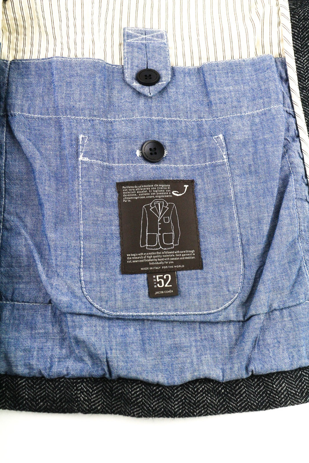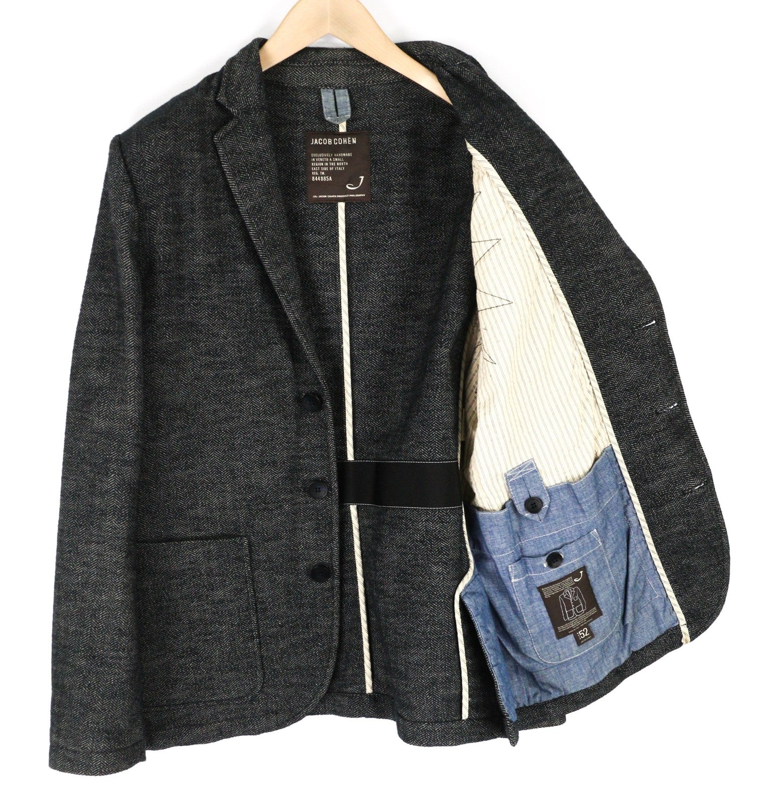JACOB COHEN J521 vyriškas švarkas 52 tamsiai pilkas su medvilnės vilnos raštu ir be pamušalo