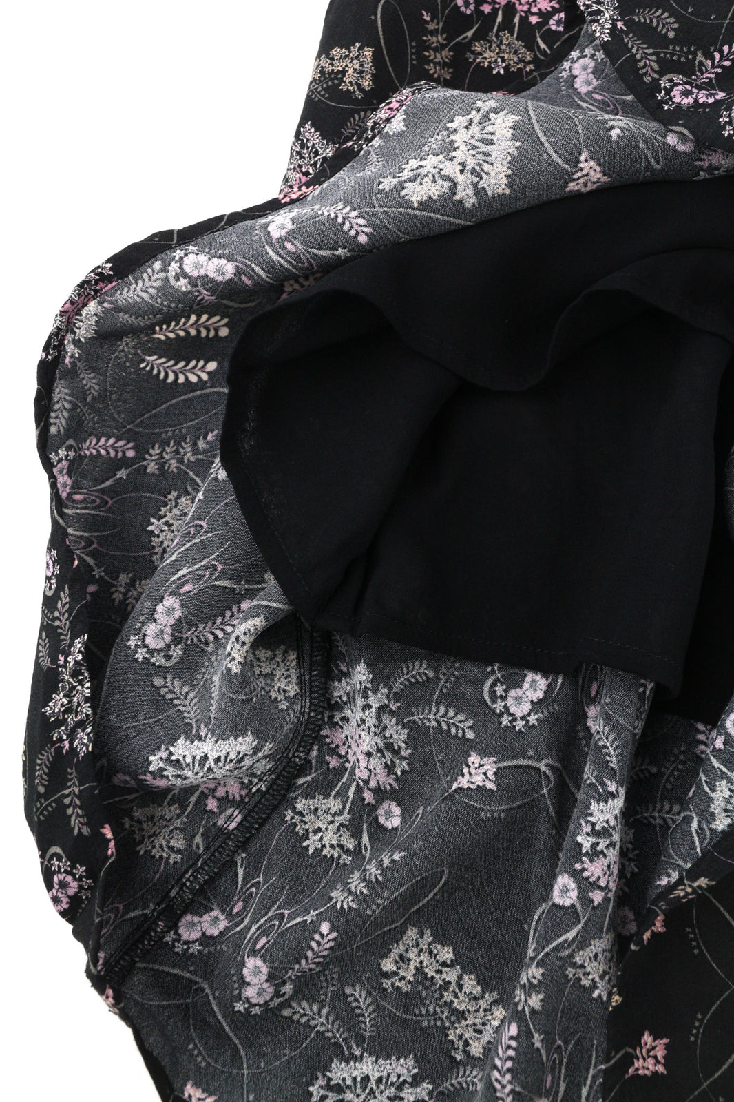 JACQUELINE RIU Rjapa196 moteriška suknelė, 38 cm, tamsi, be rankovių, su V formos iškirpte, gėlėtu raštu.