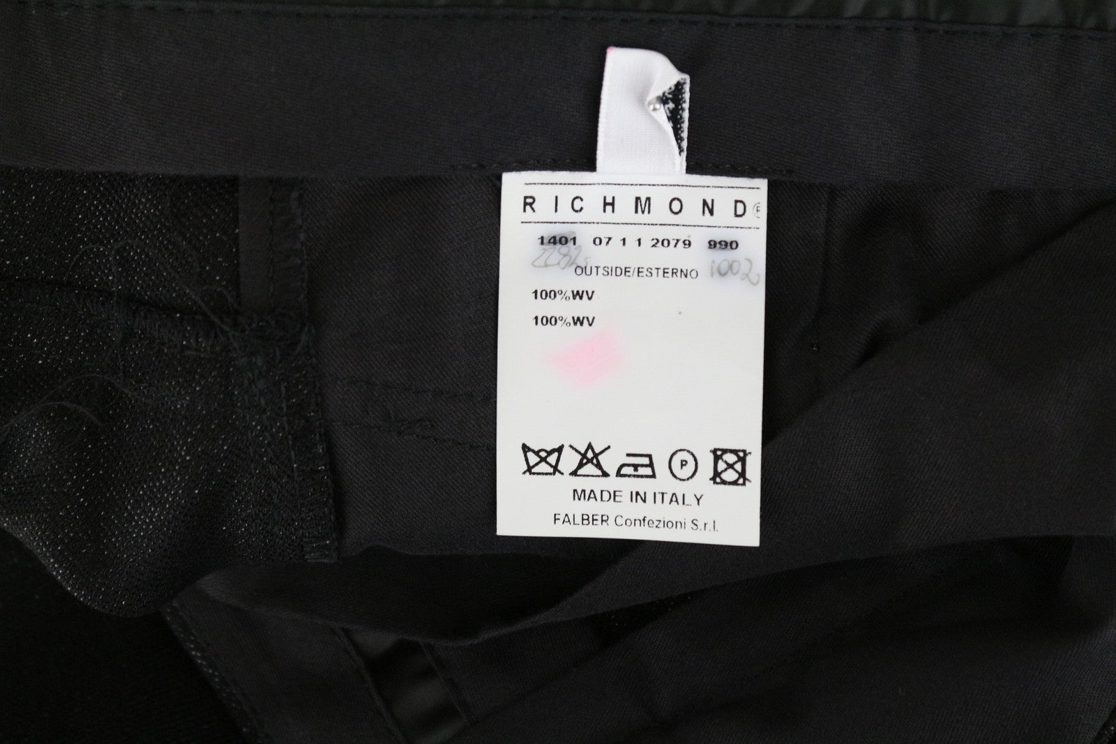 JOHN RICHMOND Black Pleated Wool Trousers UK16 Men's Shiny Thread Tailored Fit
