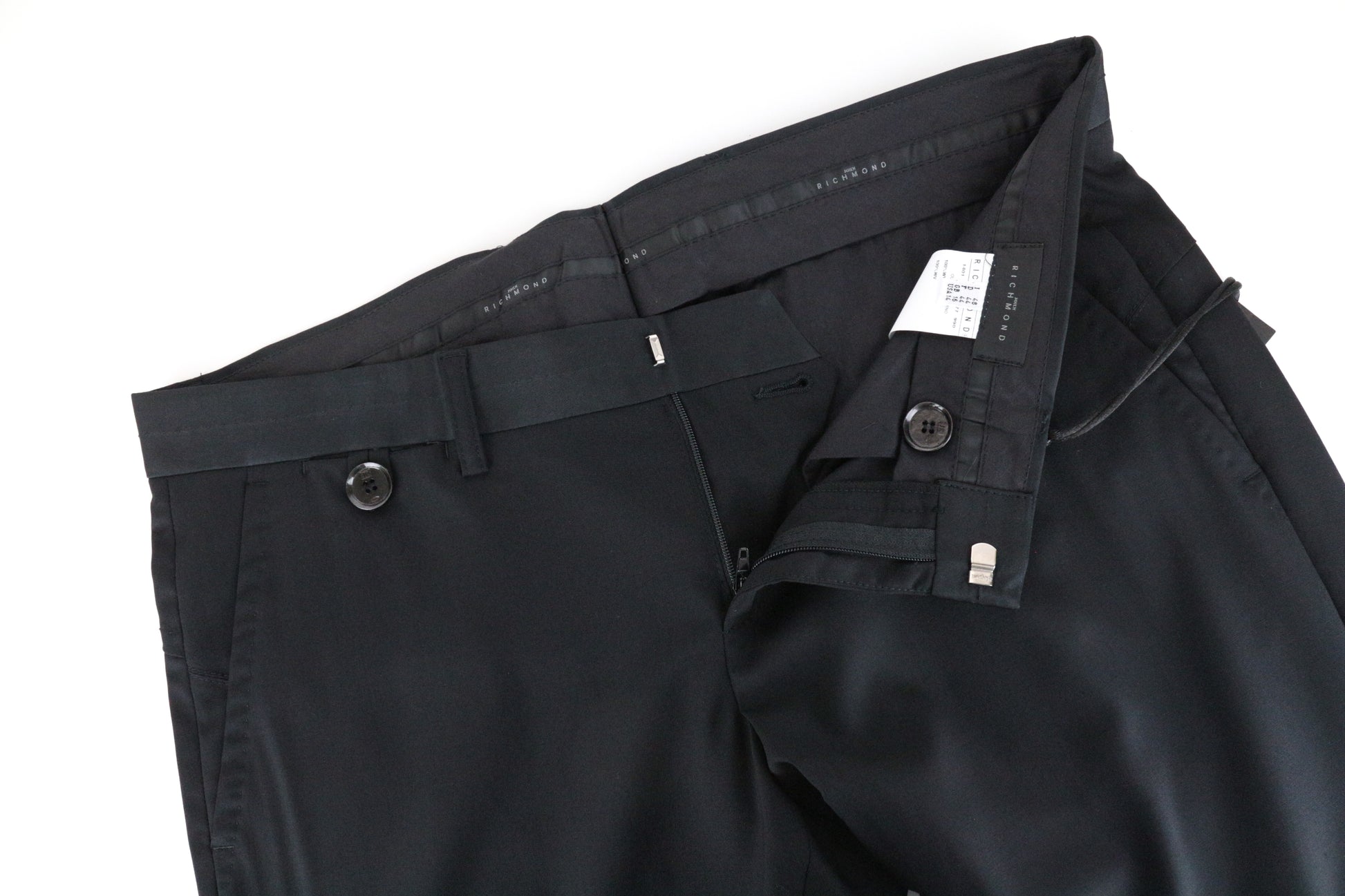 JOHN RICHMOND Men's 48 Black Virgin Wool Zip-Fly Chino Style Smart Trousers