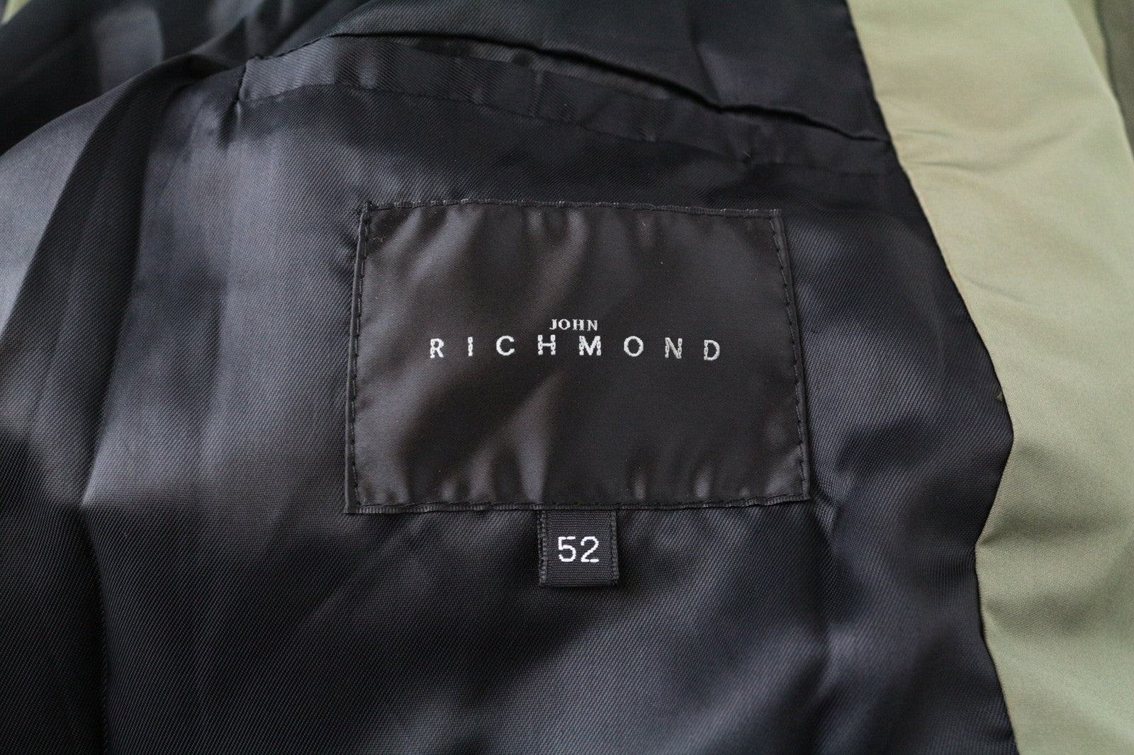JOHN RICHMOND vyriška striukė 52 žalia medvilninė lininė striukė su užtrauktuku, lengva