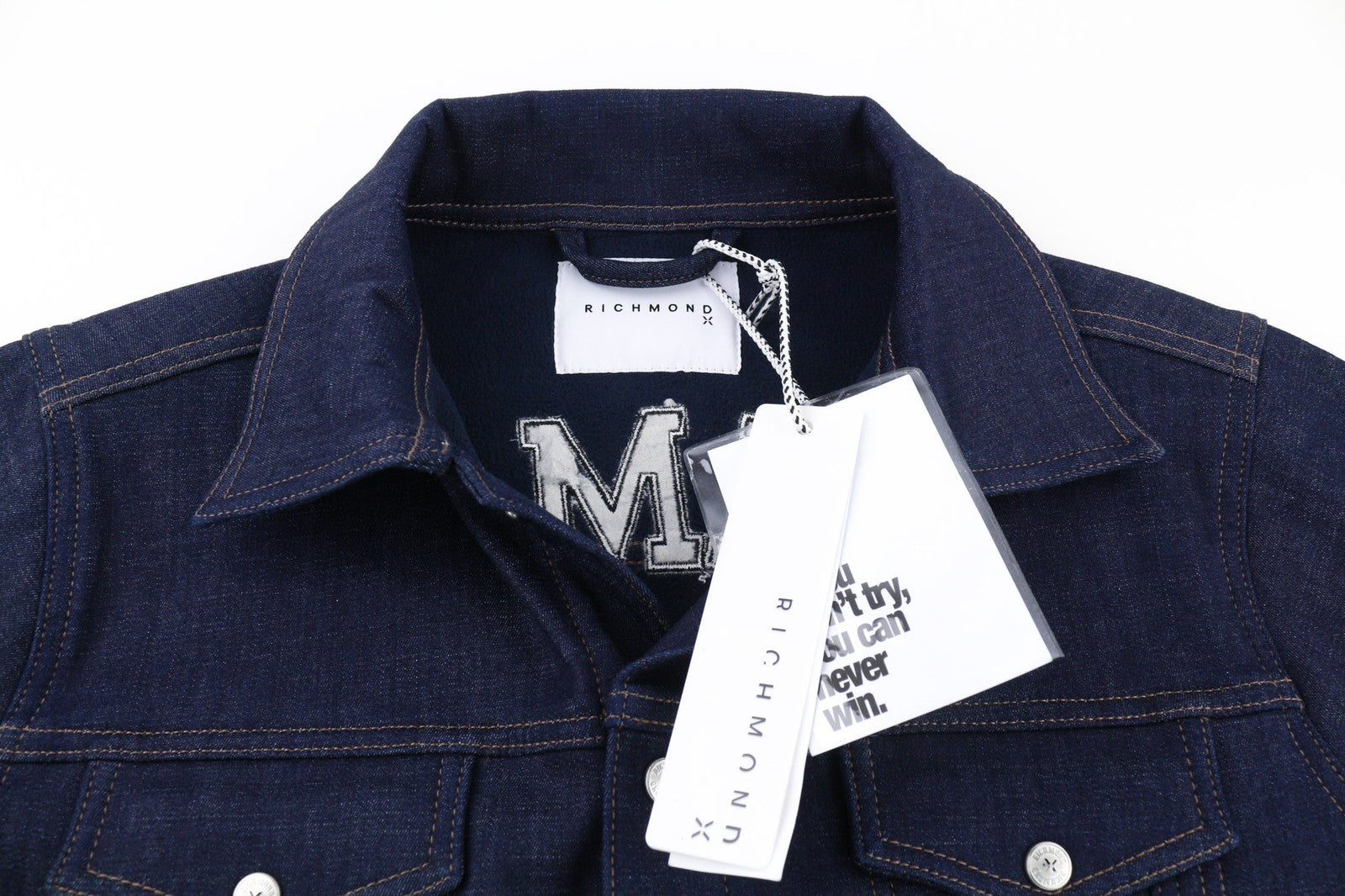 JOHN RICHMOND vyriška striukė ~M džinsinis sunkvežimio tipo polo apykaklės užsegimas su sagomis tamsiai mėlynos spalvos logotipu