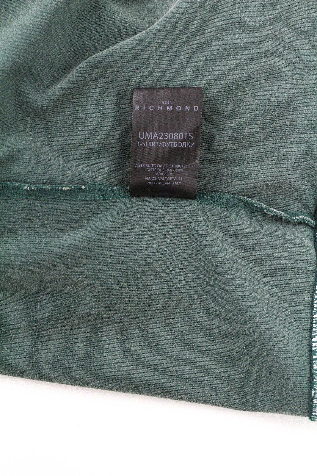 JOHN RICHMOND vyriški marškinėliai L dydžio žali apvalios iškirptės trumpomis rankovėmis su dideliais lopais