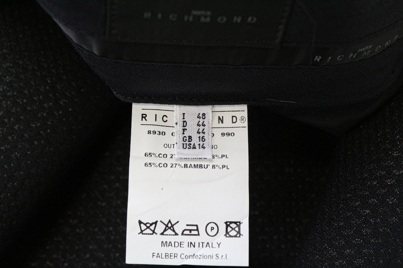 JOHN RICHMOND vyriškos kelnės, UK46, juodos, medvilnės mišinio, plokščio priekio, blizgantys siūlai