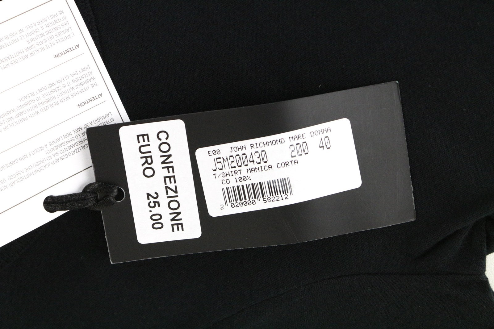 JOHN RICHMOND moteriški juodi IT40 grynos medvilnės trumpomis rankovėmis megztiniai su logotipu