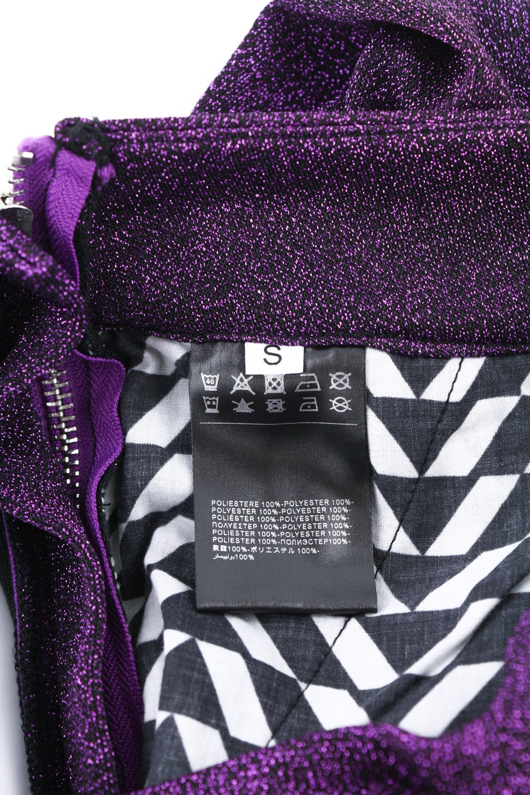 JOHN RICHMOND moteriškos kelnės S dydžio violetinės spalvos su blizgučiais, aukštu juosmeniu, platėjančiu užtrauktuku ir logotipu