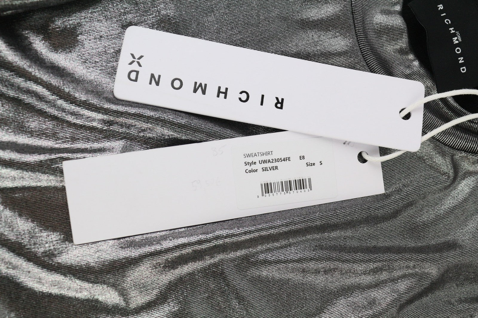 JOHN RICHMOND Women's Sweatshirt S Pullover Silver Shiny Long Sleeve Top