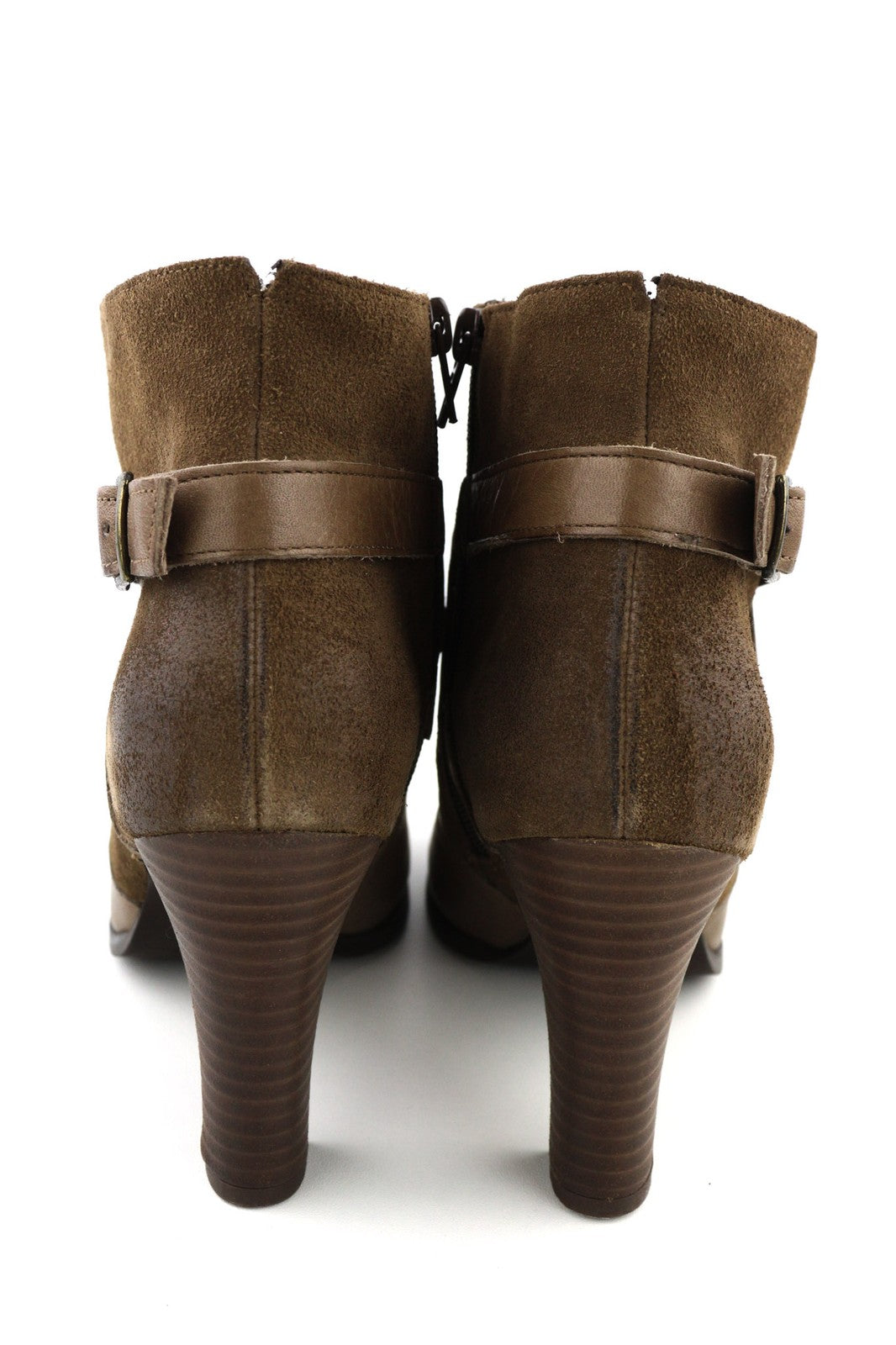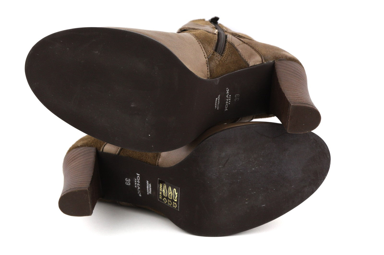 JONAK moteriški aulinukai UK6.5 EU39 rudi zomšiniai, su užtrauktuku, migdolų nosimi, plonu kulnu ir sagtimi