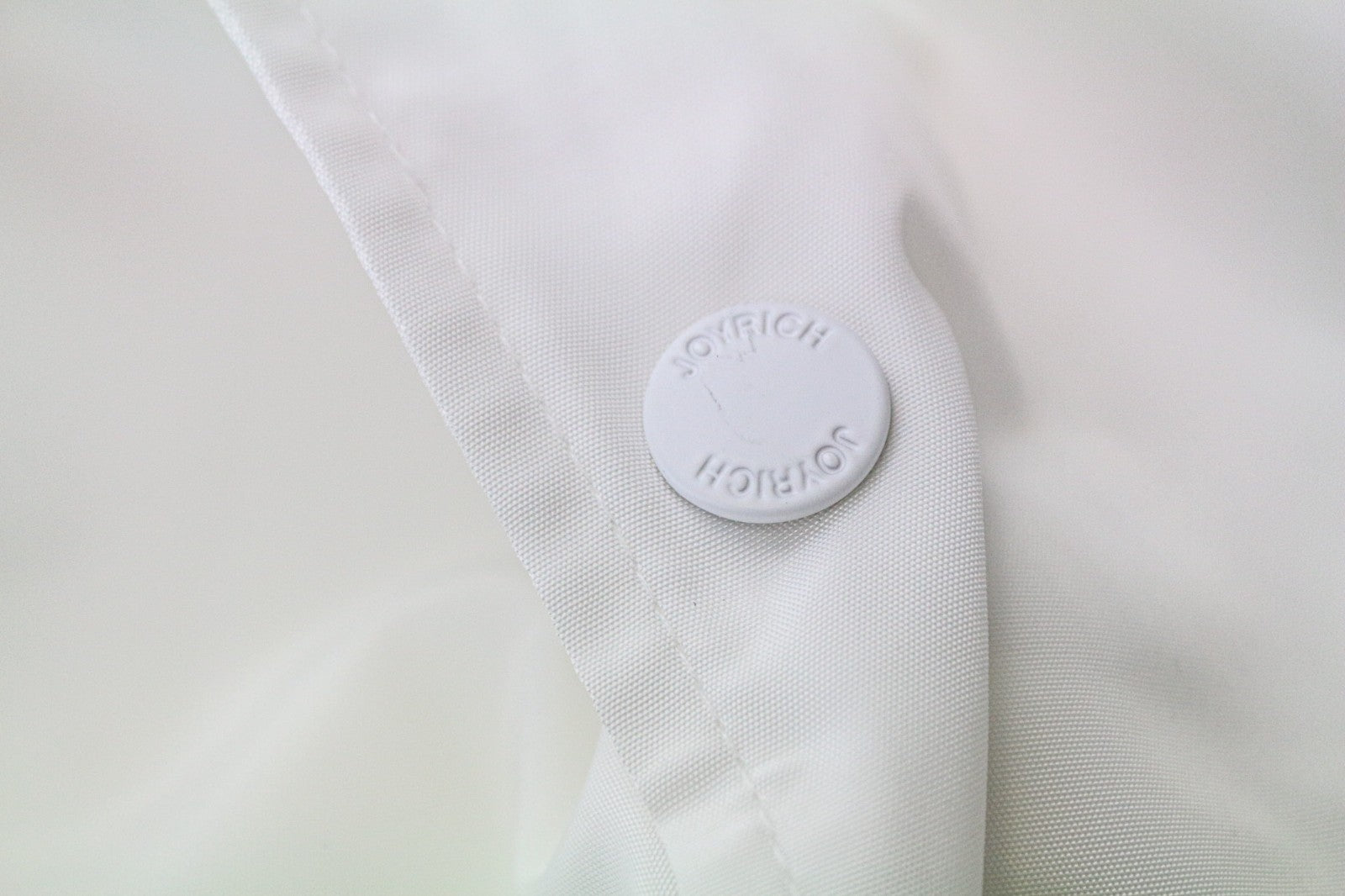 New with defects. Stains on the front and back. Scratched snaps. Please see added photos.