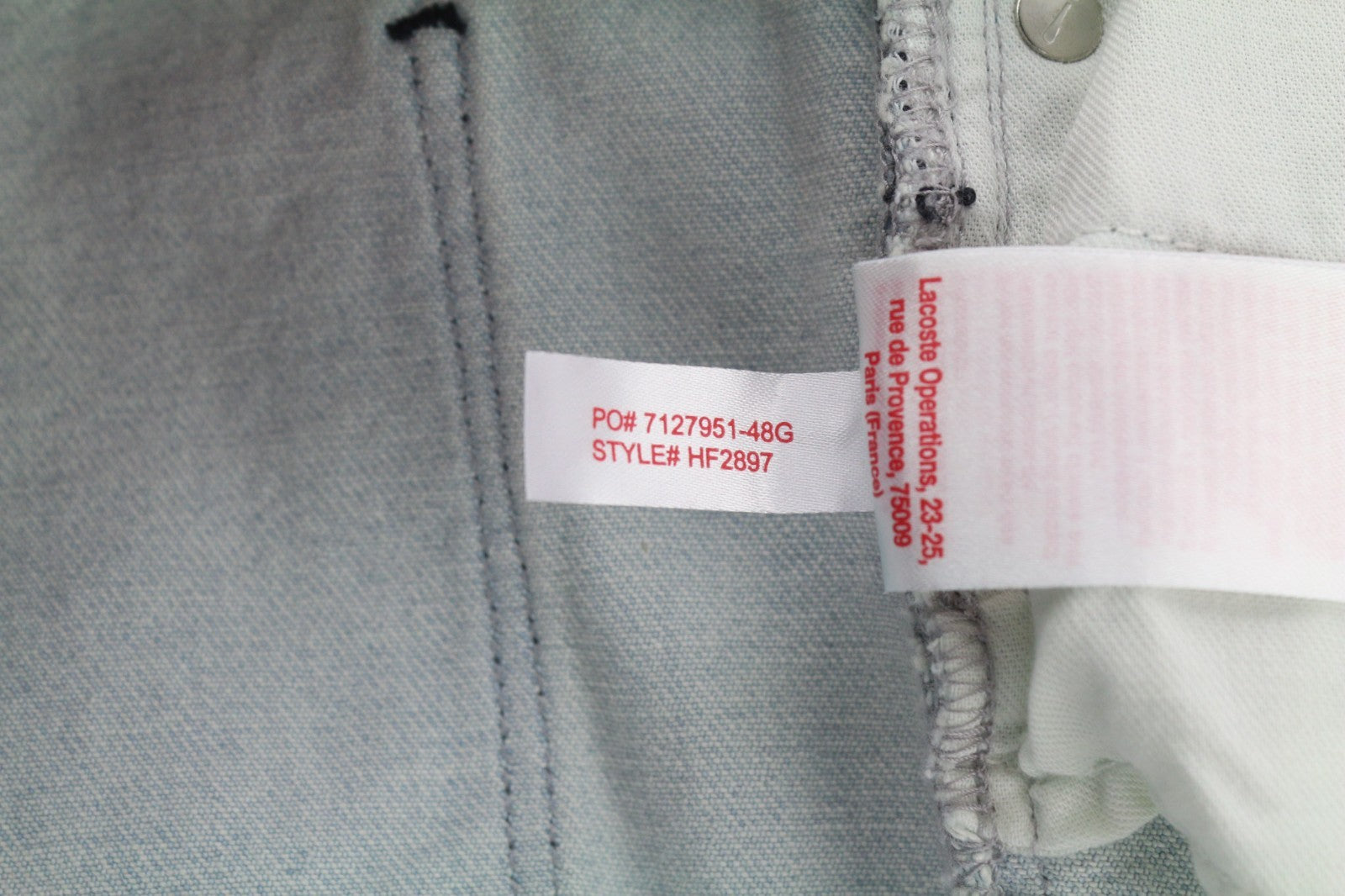 LACOSTE HF2897 moteriški W30 mėlyni skalbtos medvilnės tamprūs ploni siaurėjantys džinsai