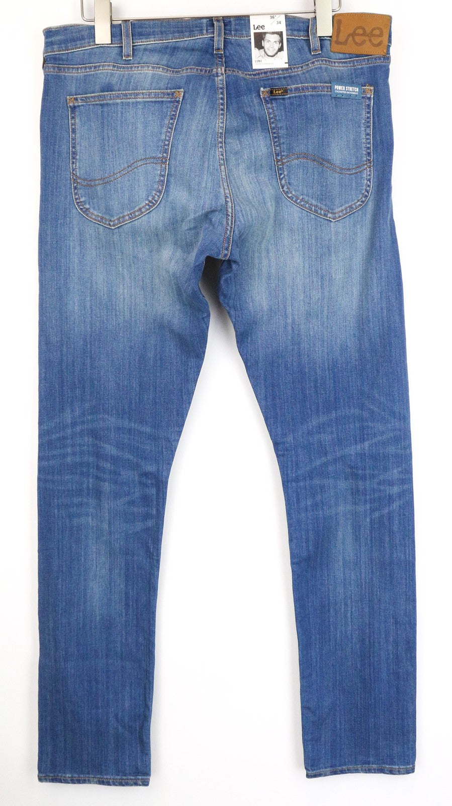 LEE Luke vyriški džinsai W36/L34 apdriskę, ploni, siaurėjantys, medvilniniai, tamprūs, mėlyni