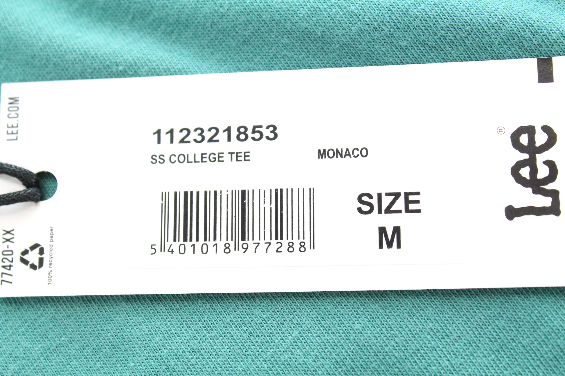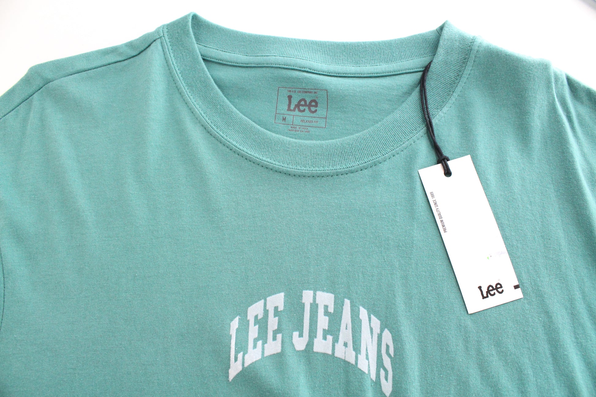 LEE Men's M Green College Sporty T-Shirt Striped Relaxed Fit Cotton Jersey