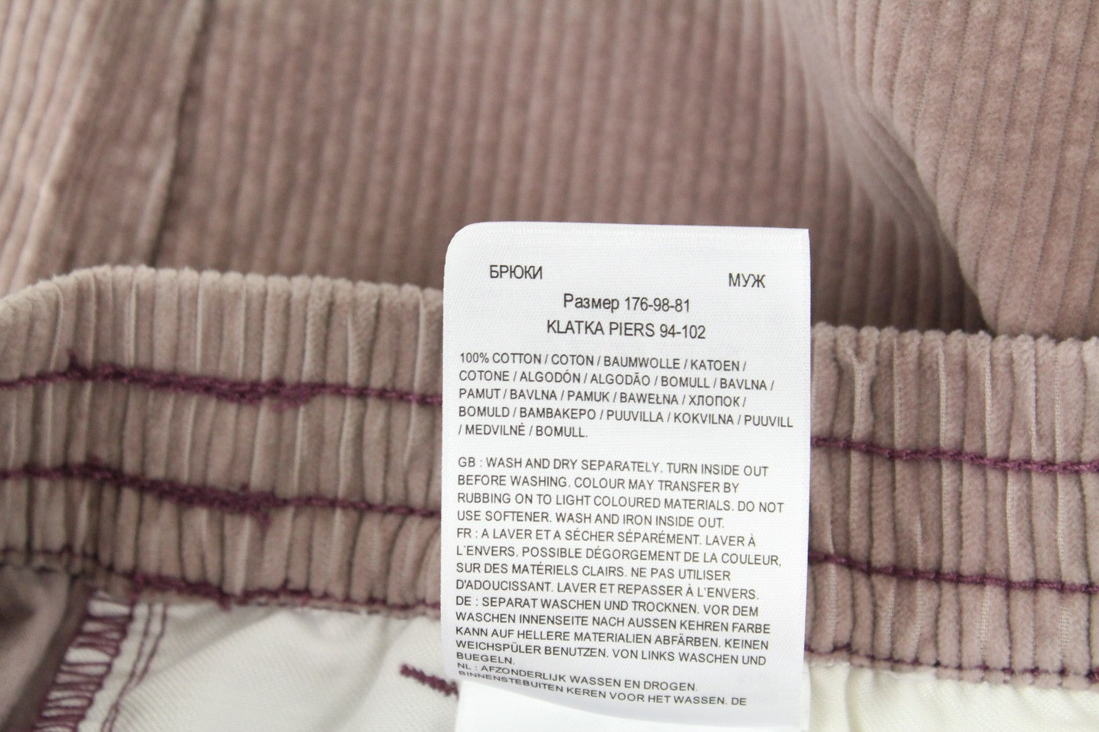 LEE Men's Pink Corduroy Pants M Relaxed Fit Cuffed Drawstring Casual Trousers