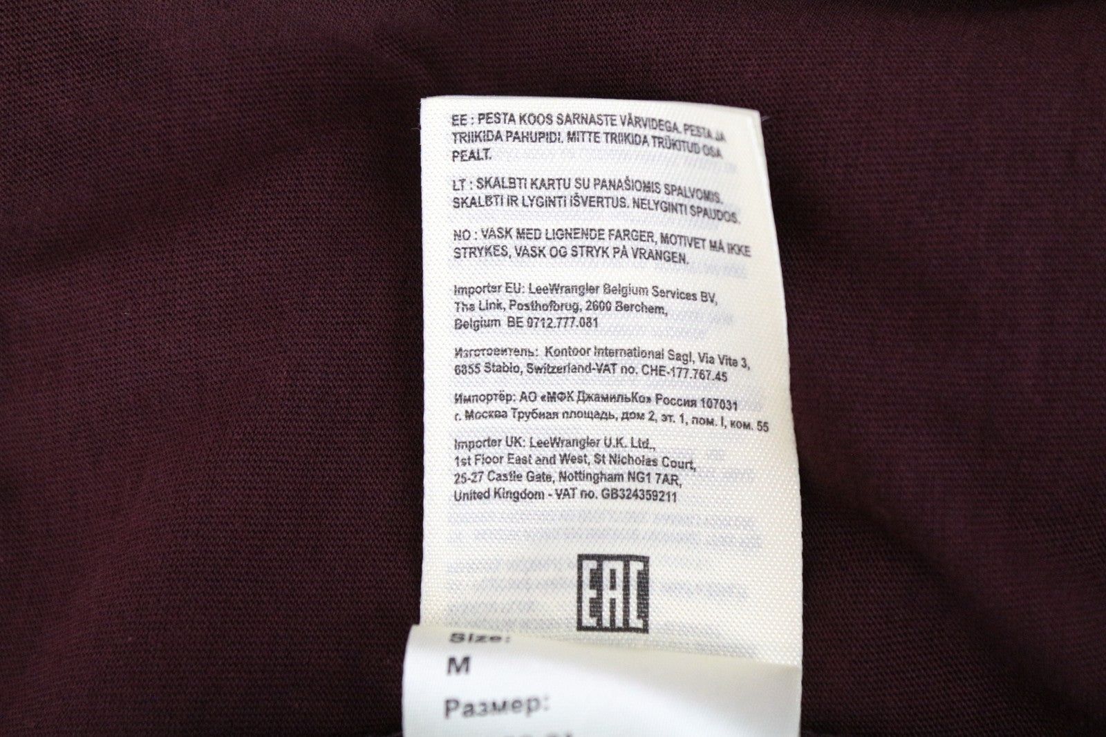 LEE vyriški marškinėliai M bordo spalvos laisvo kirpimo medvilniniai marškinėliai trumpomis rankovėmis