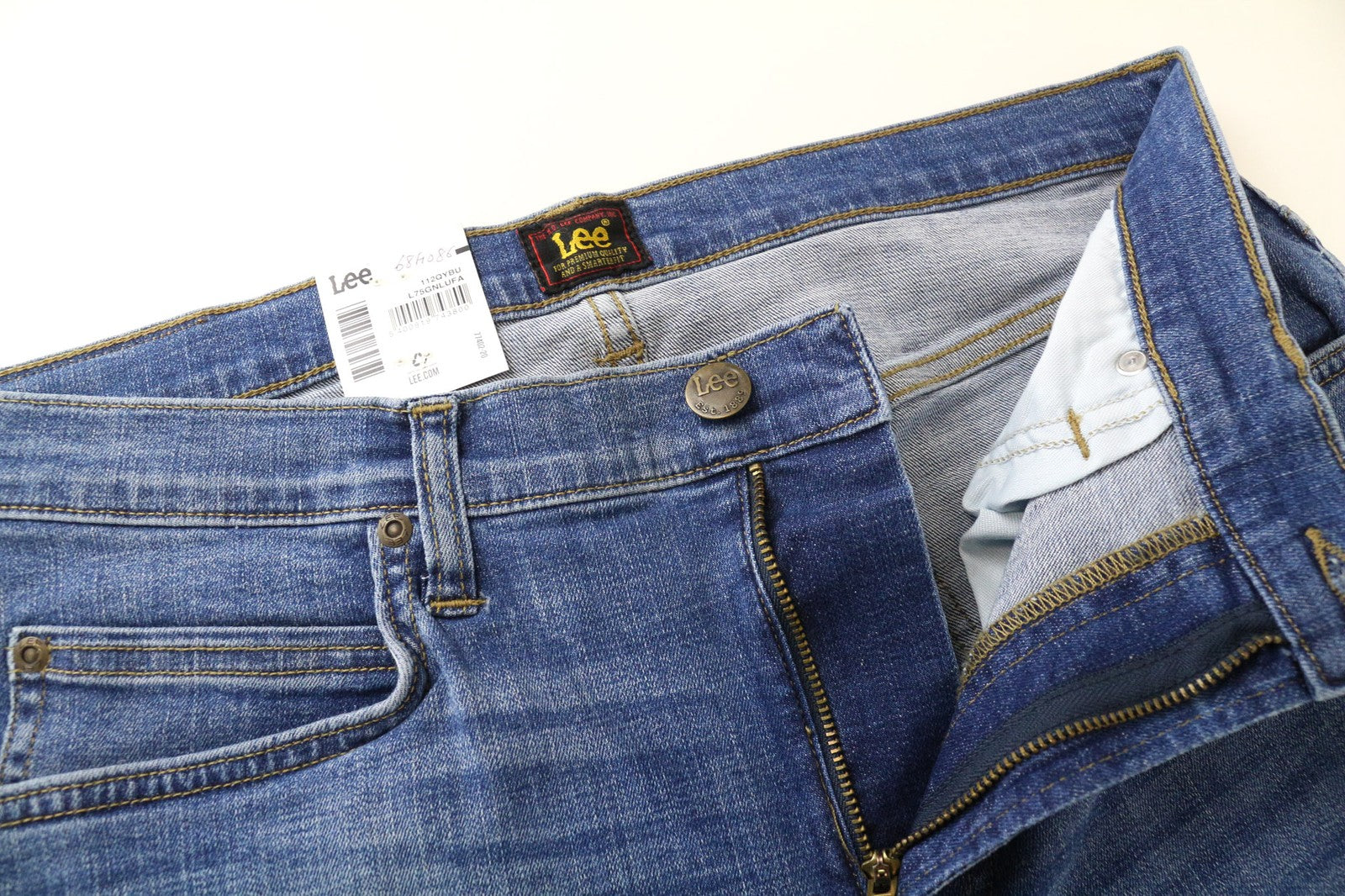 LEE Rider trumpinti vyriški džinsai W32/L34 vidutinio mėlynumo, tamprūs, ploni, klasikinio stiliaus, su užtrauktuku