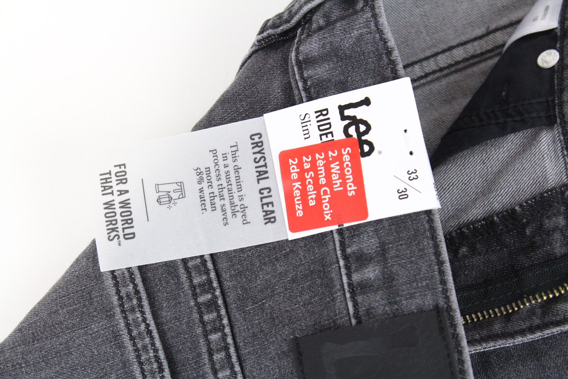 LEE Rider vyriški W33/L30 pilki skalbto džinso tamprūs džinsai, ploni, laisvalaikio stiliaus