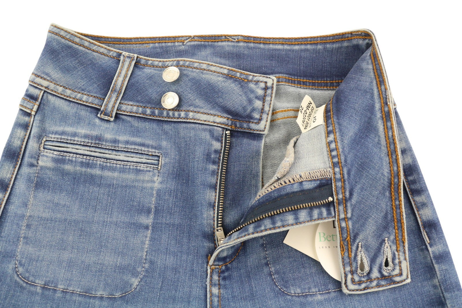 LIU JO Flare Fletti moteriški džinsai W28 aukštu juosmeniu, plačių klešnių spalvos, skalbto džinso mėlynumo.