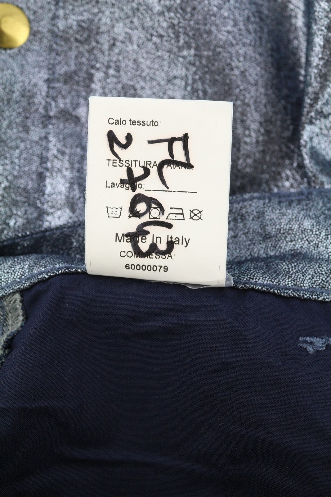 LIU JO Laminato moteriški džinsai W28 blizgučiais ir blizgiais užsegimais šone, įprasto kirpimo, mėlyni, užtrauktuku.
