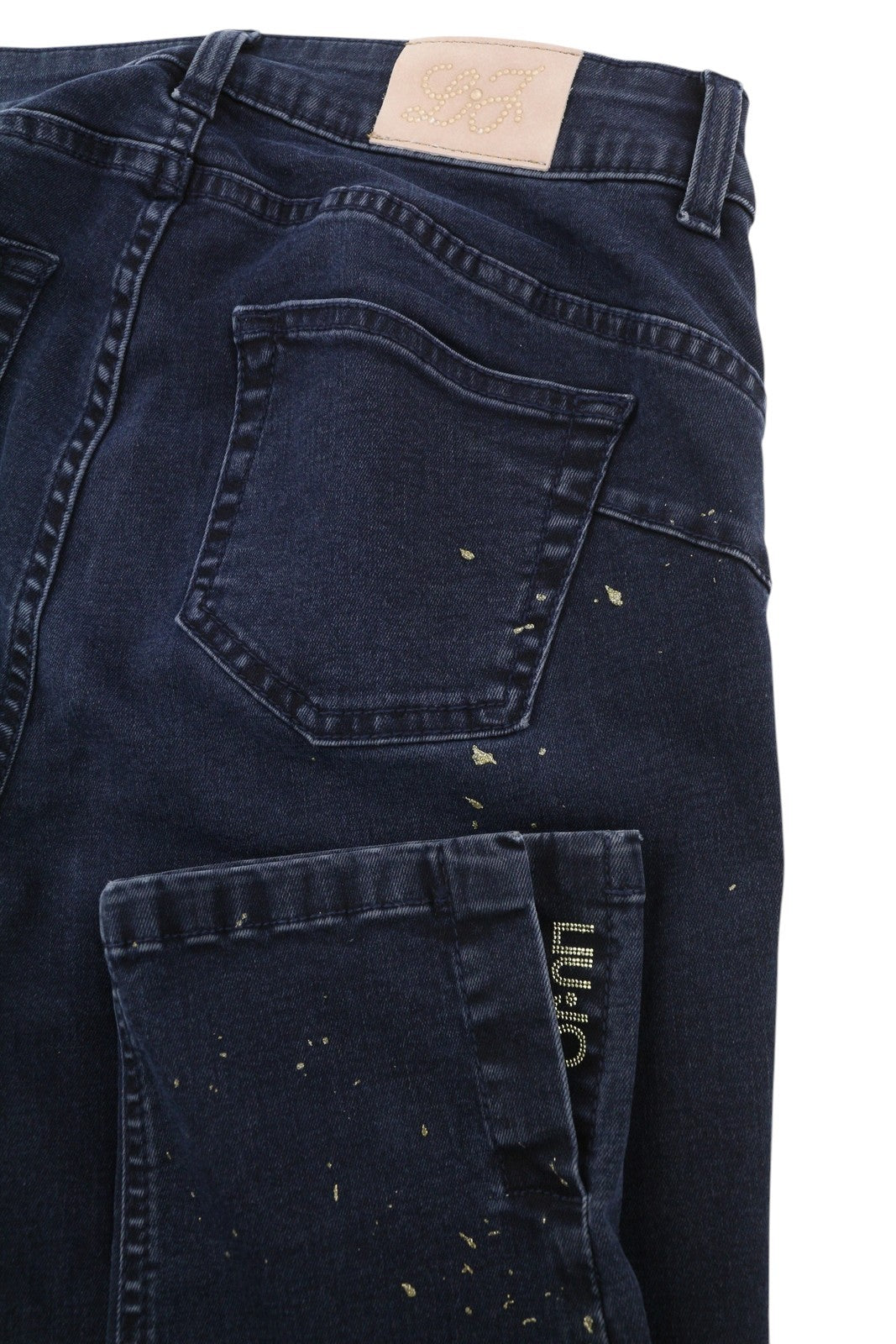 LIU JO New Classy Women Jeans W28 Slim Washed Denim Blue Painted Ankle Length