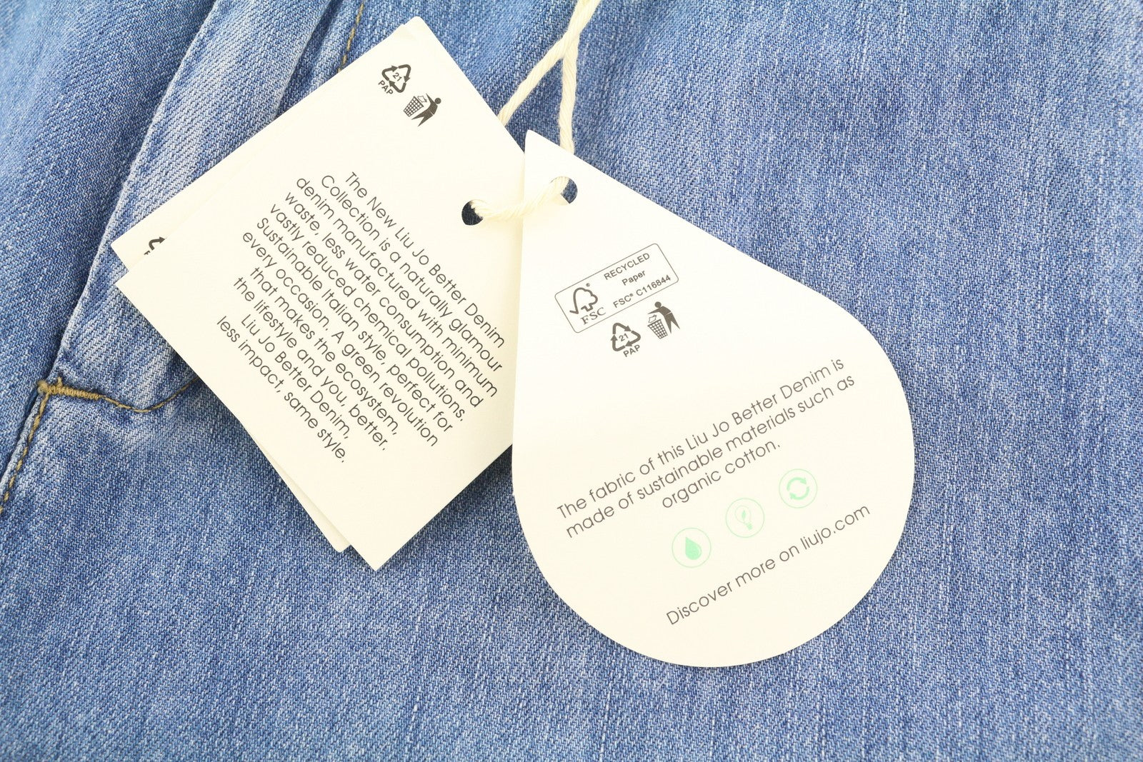 LIU JO moteriški džinsai W27 aukštu juosmeniu, tiesūs, su užtrauktuku, šviesiai mėlyni.