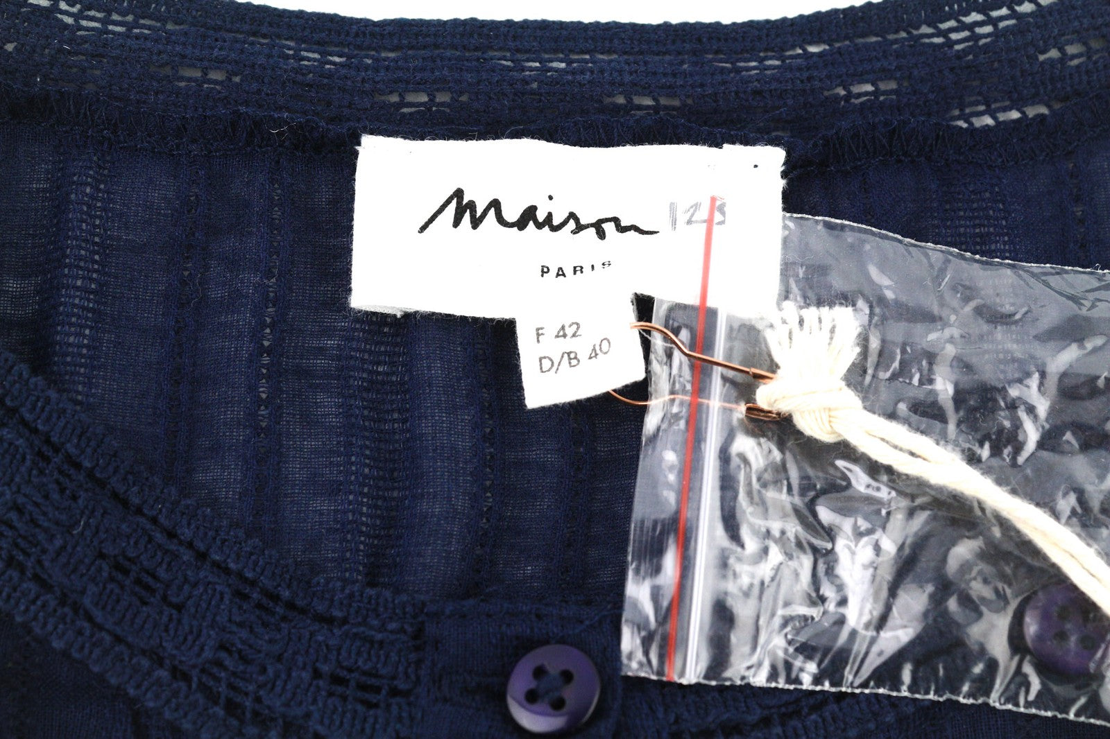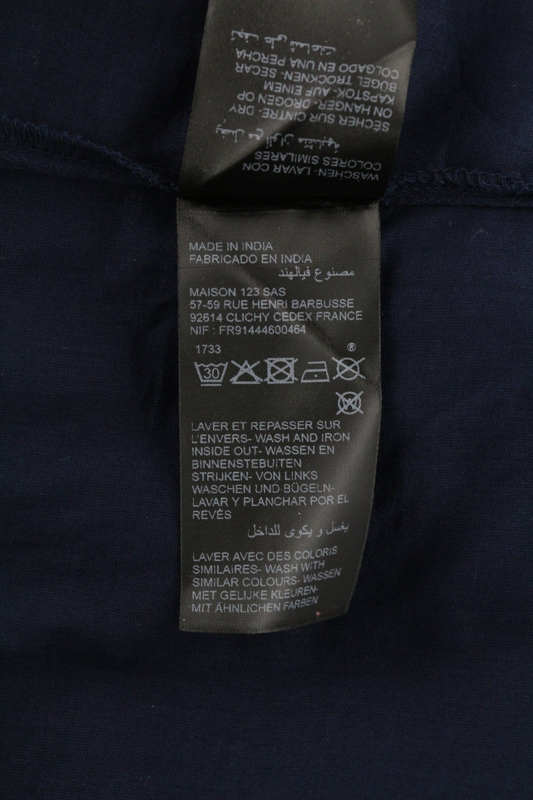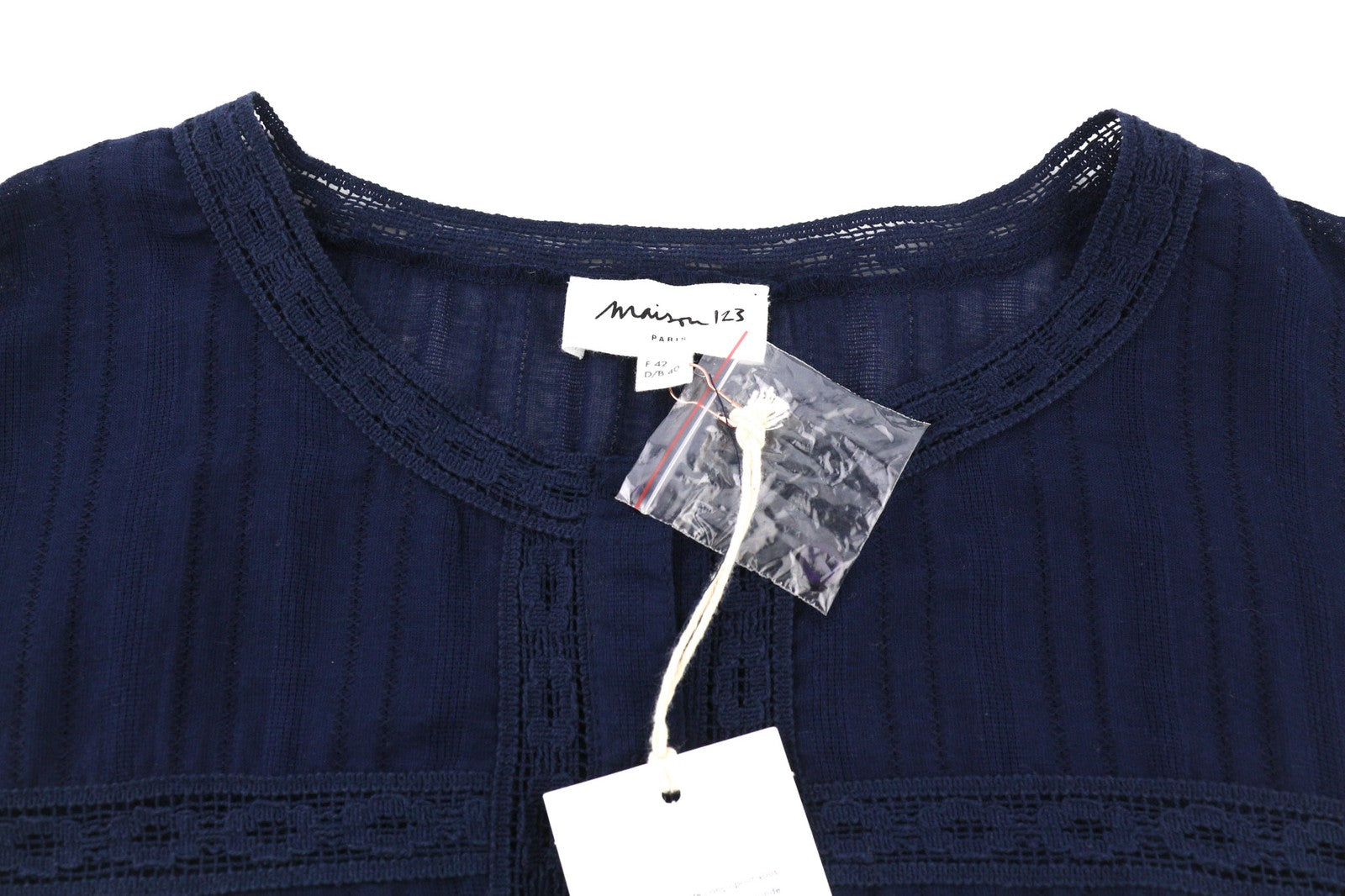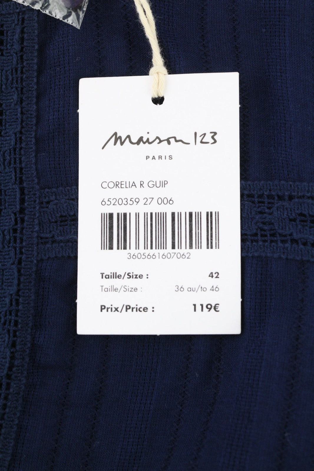 MAISON 123 Corelia R Guip moteriška suknelė 42 tamsiai mėlyna trumpomis rankovėmis su 1/4 sagomis