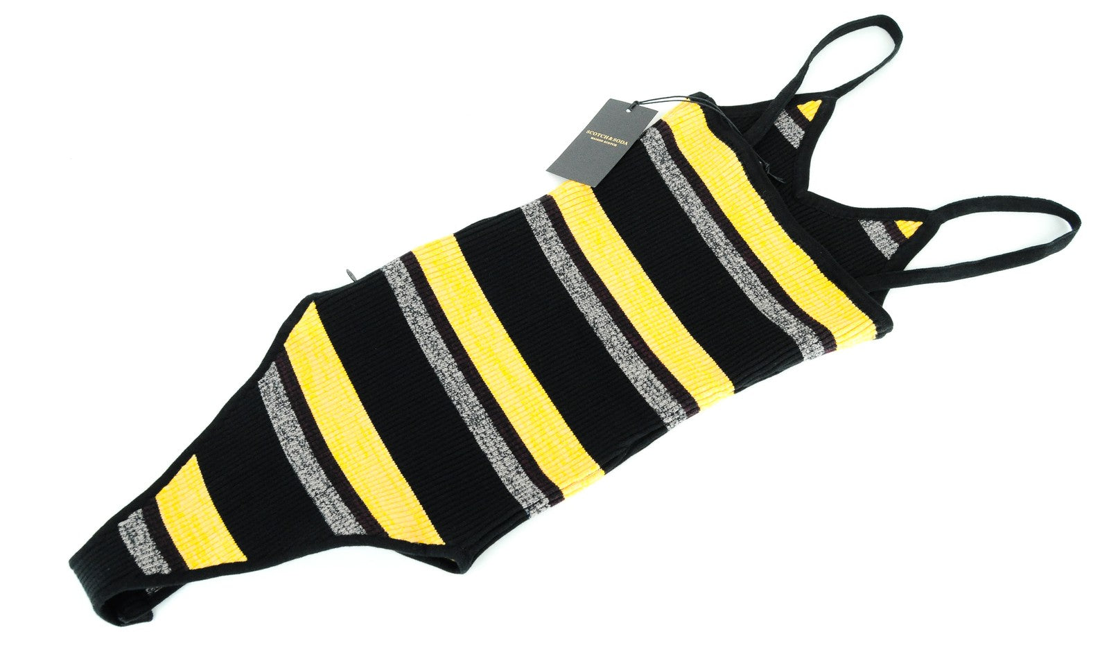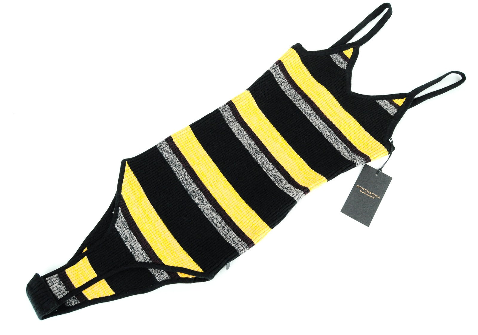 MAISON SCOTCH One Piece Top Women XS Cotton Blend Black Orange Striped Bodysuit