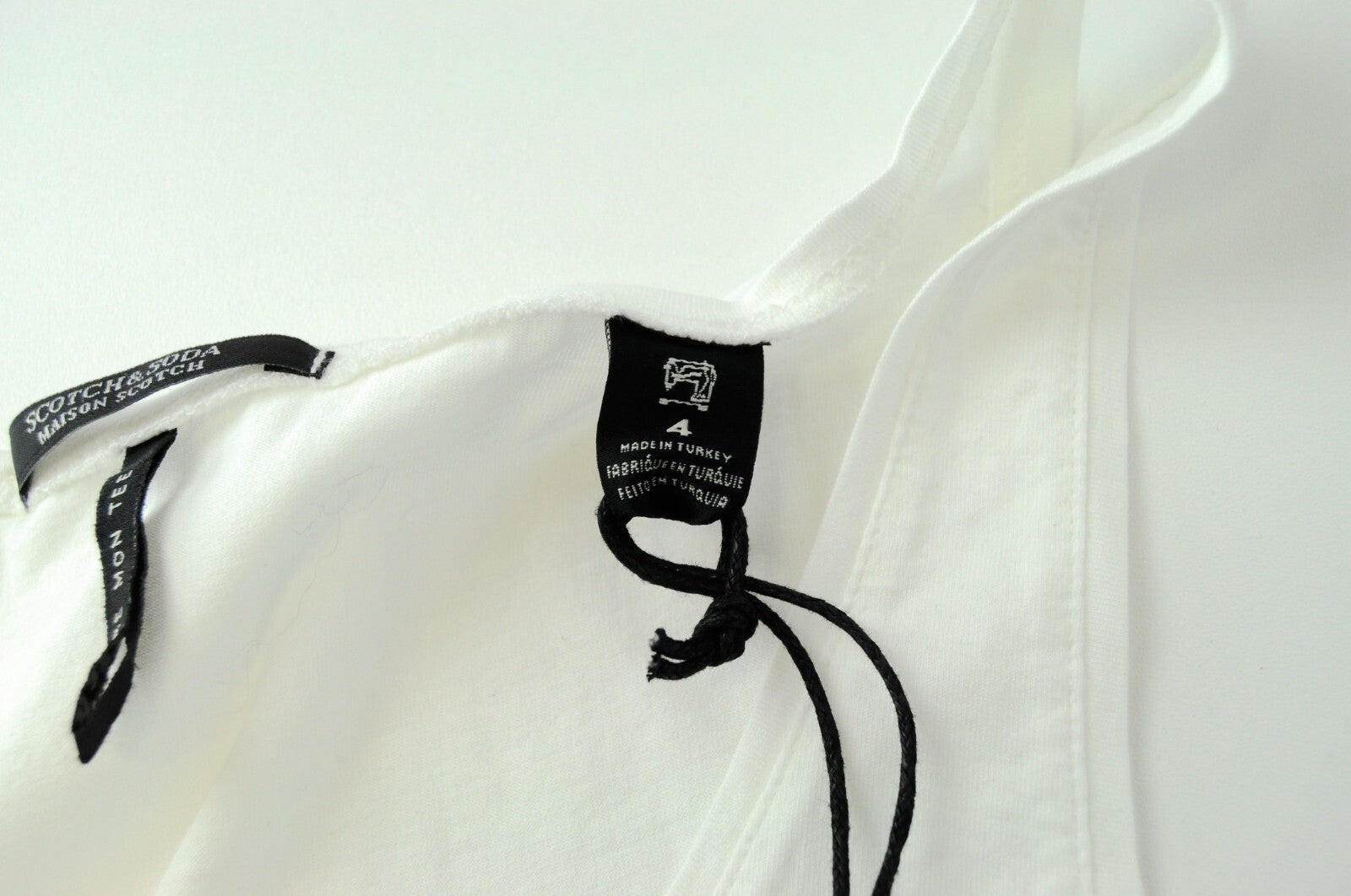 MAISON SCOTCH White Tank XL Women's Plain Sleeveless Round Neck Cotton Top