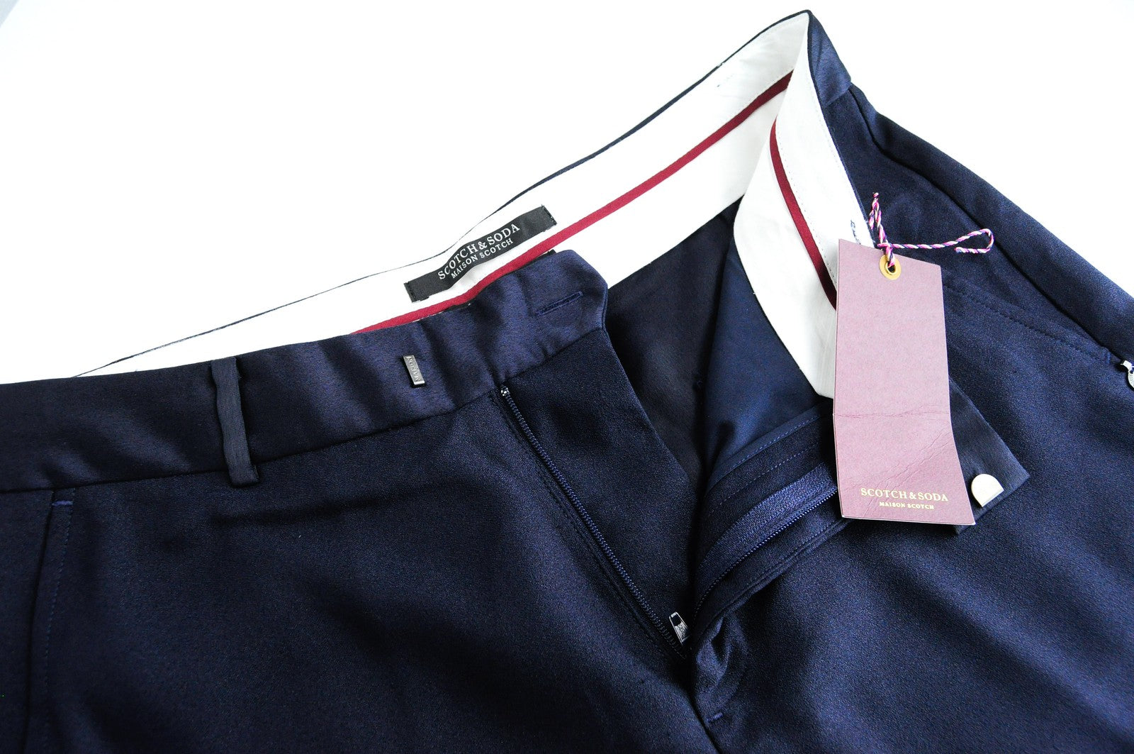 MAISON SCOTCH Wide Trousers Womens S Pleated Zip Dark Blue Classic Pants