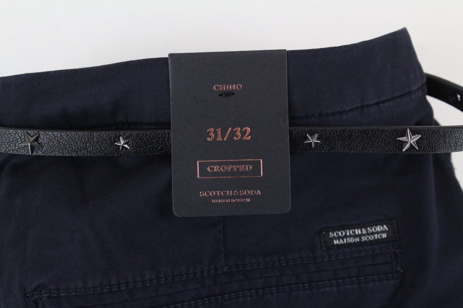MAISON SCOTCH Women Cropped Trousers W31/L32 Navy Belted Stretch Chino Pants
