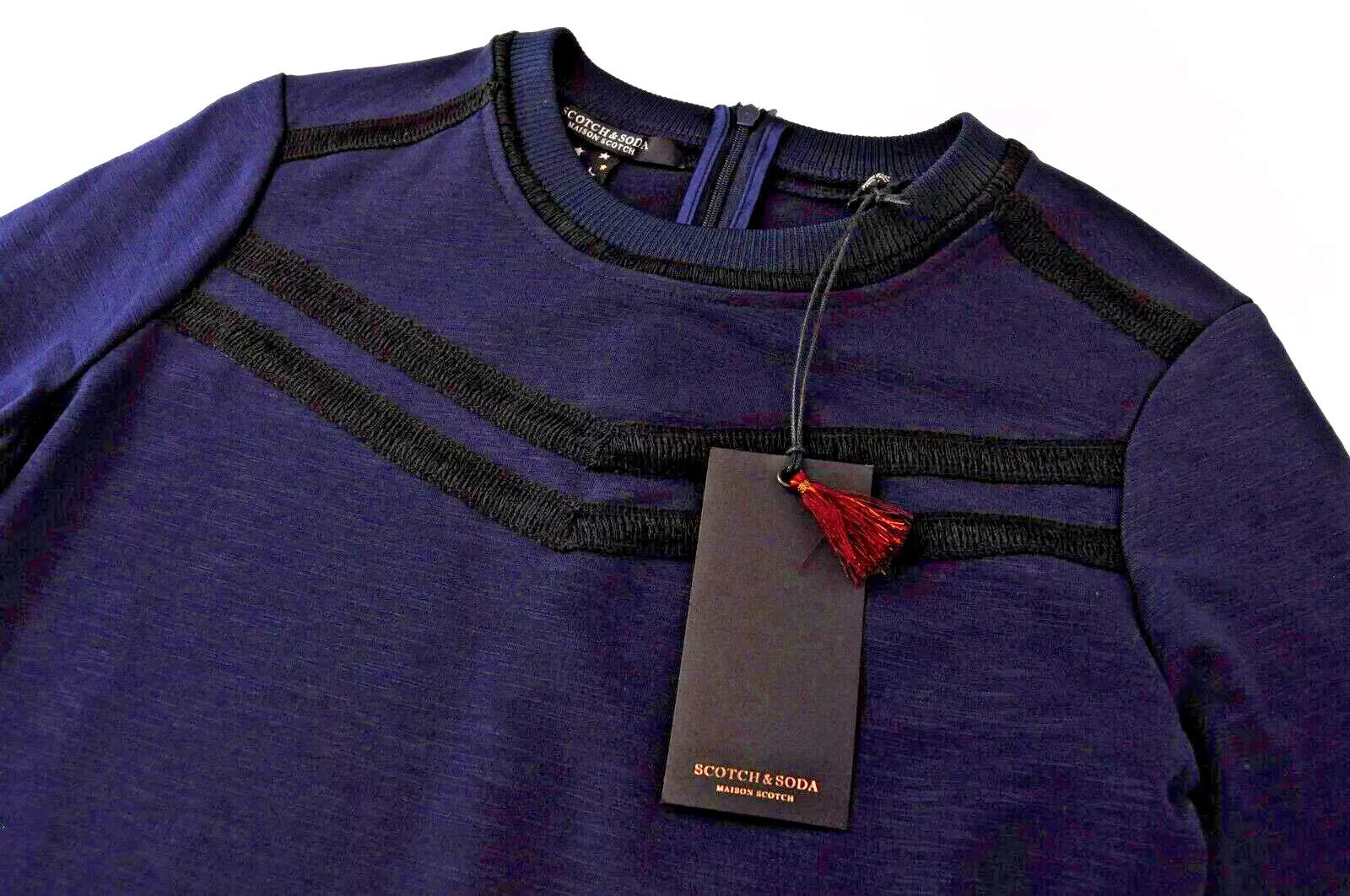 MAISON SCOTCH Women Dress S Navy Stretch Cotton Blend Knee Length Long Sleeve