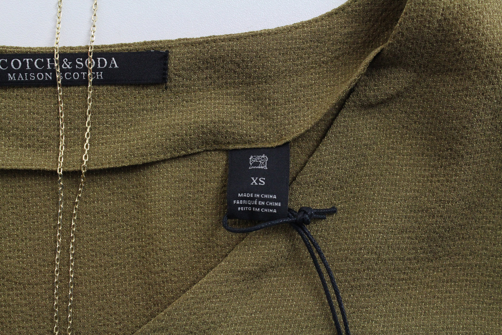 MAISON SCOTCH Women Dress XS Green Short Sleeve V-Neck Stretch Casual Mini