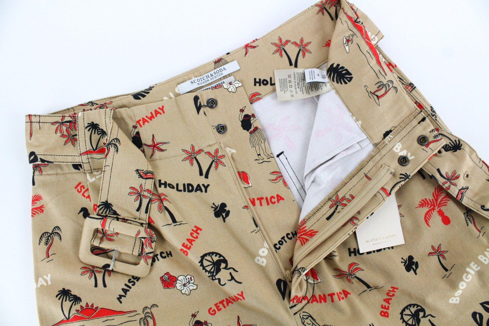 MAISON SCOTCH Women Flare Trousers M Classic Beige Vacation Style Melange